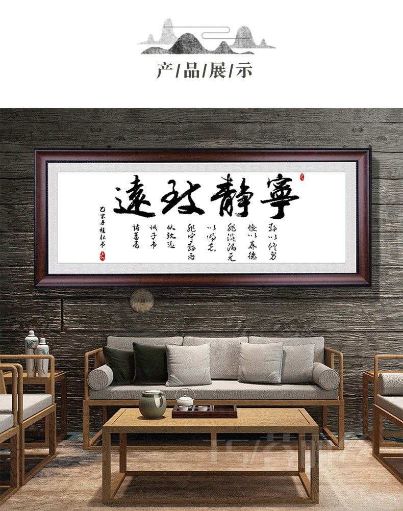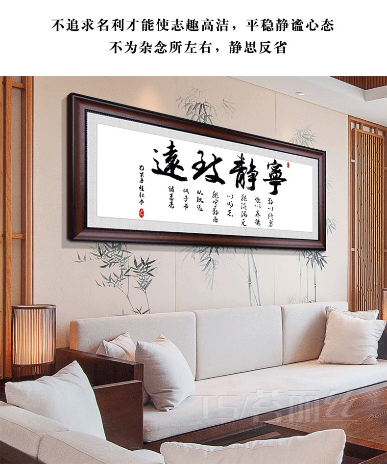 新款現代辦公室十字繡書法字畫純字繡線寧靜致遠簡單刺繡客廳掛畫1入