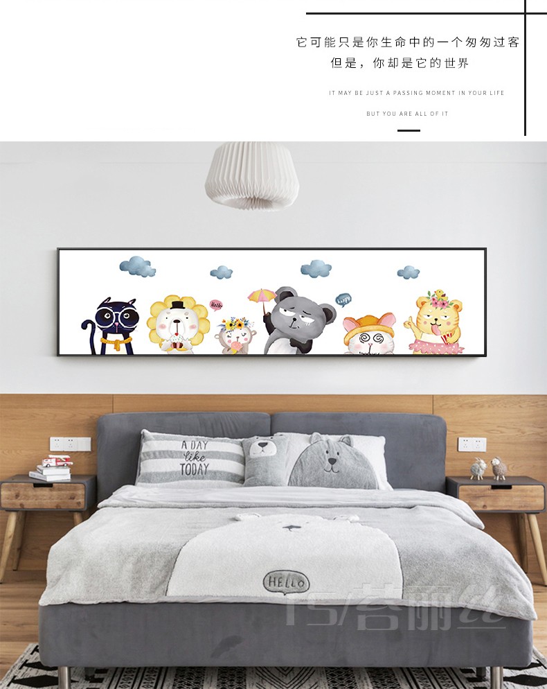 鉆石畫滿鉆新款卡通可愛貓咪臥室床點鉆十字繡掛畫北歐簡約鉆石繡1入