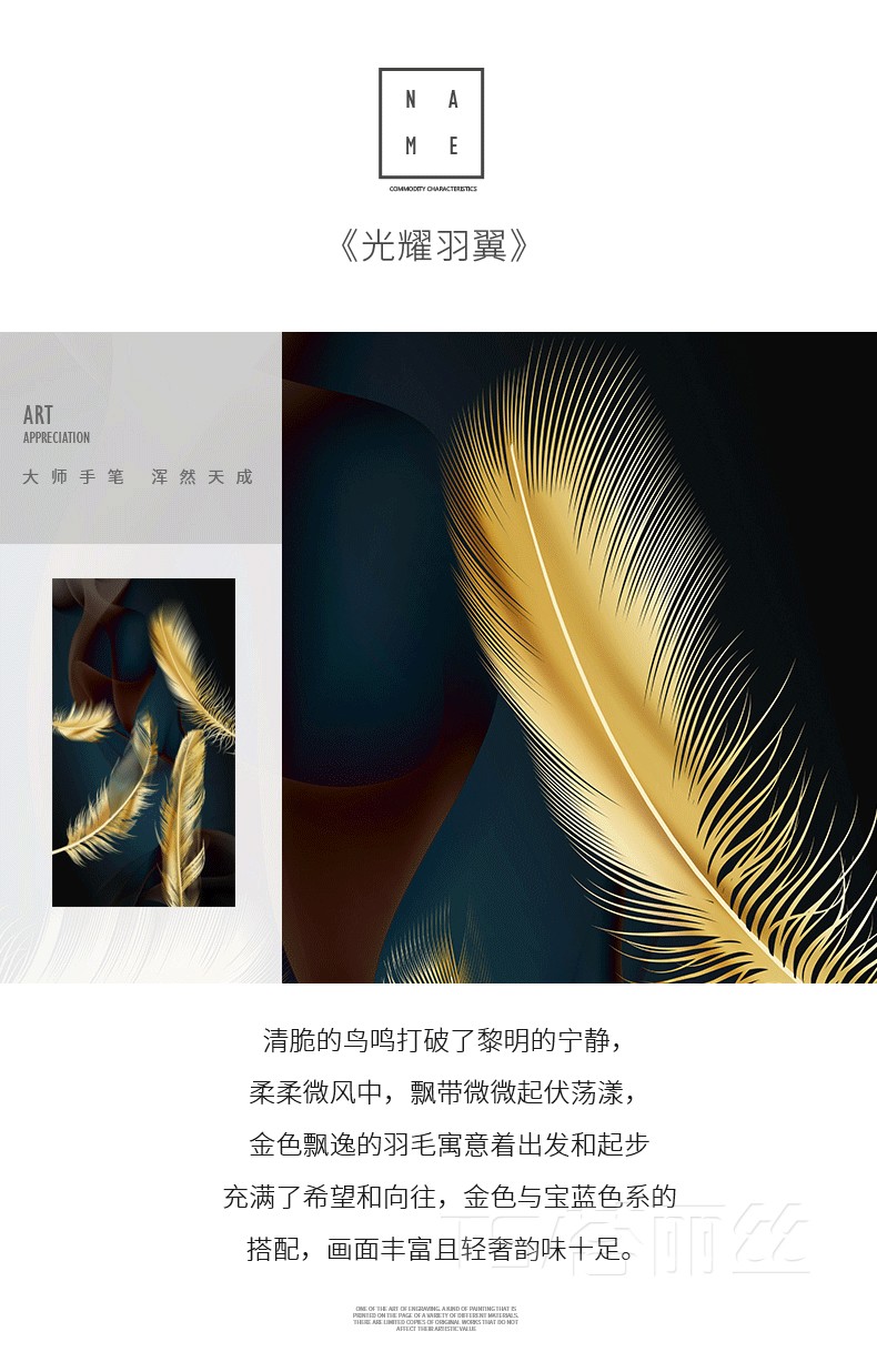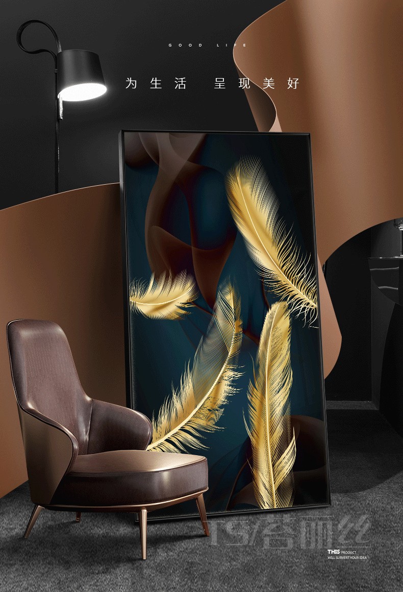 北歐輕奢玄關鉆石畫金色羽毛臥室餐廳貼鉆十字繡現代簡約客廳鉆繡1入