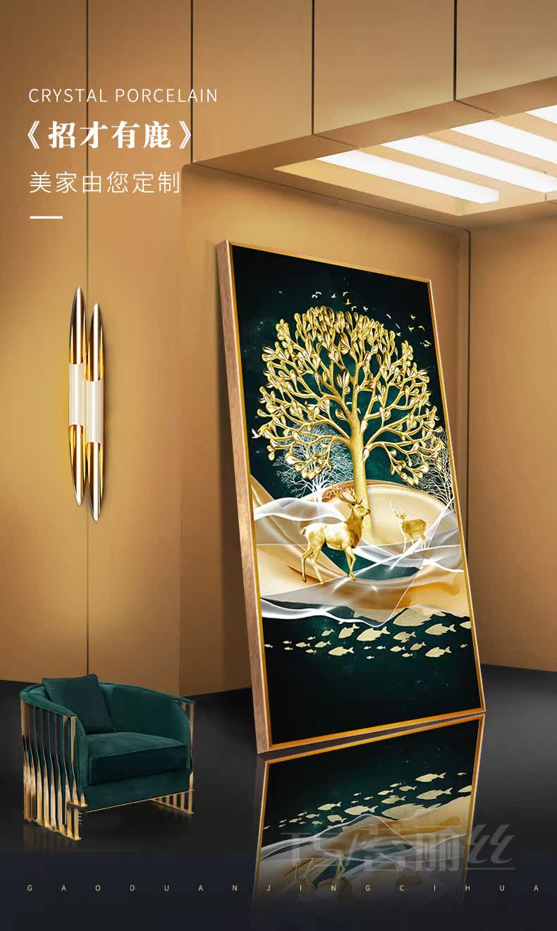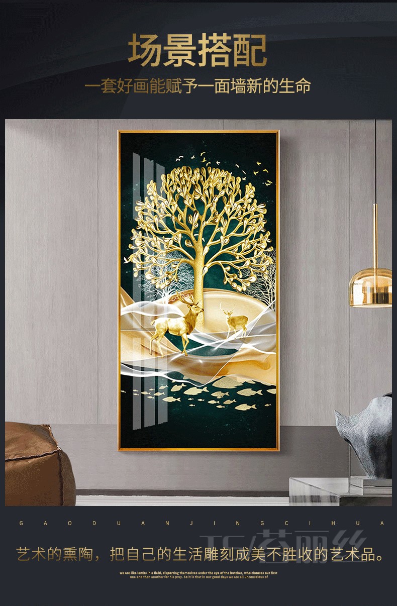 簡約歐式大氣玄關鉆石畫豎版發財樹麋鹿客廳走廊過道點鉆十字繡5d1入