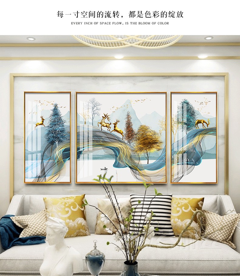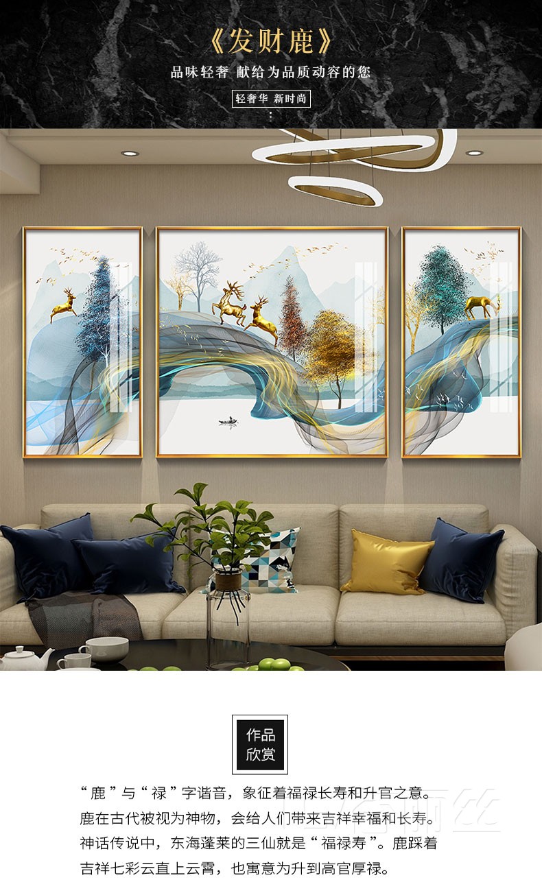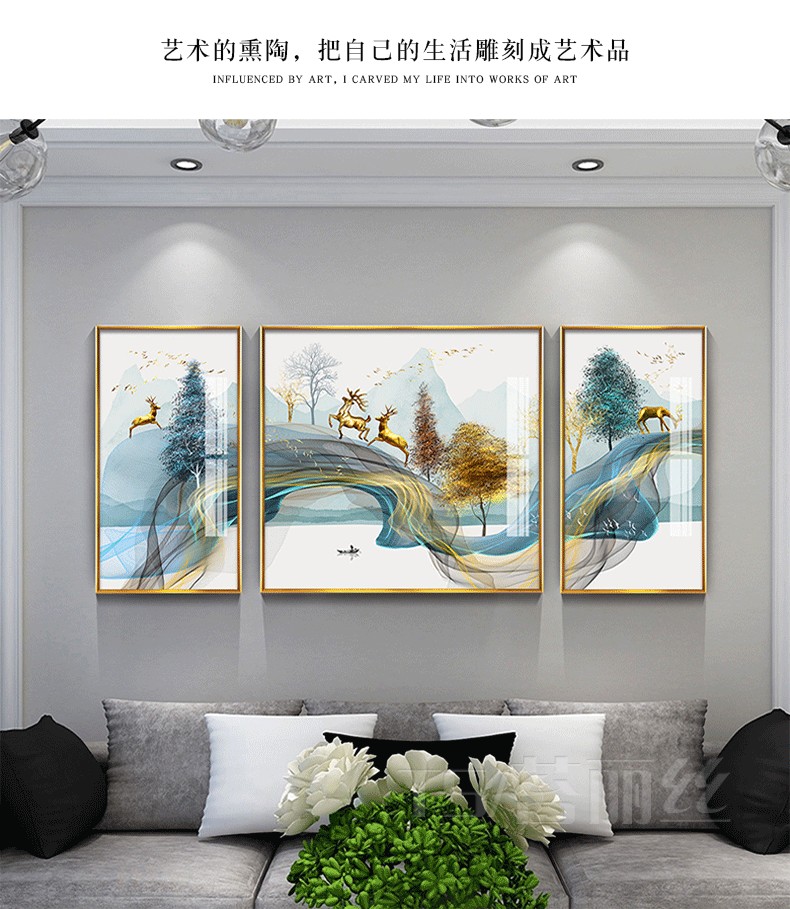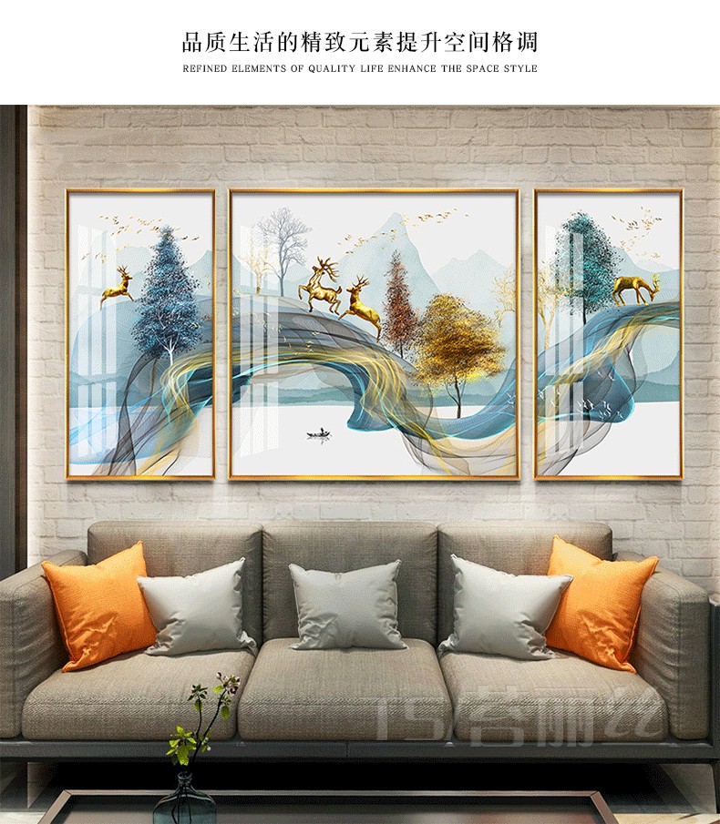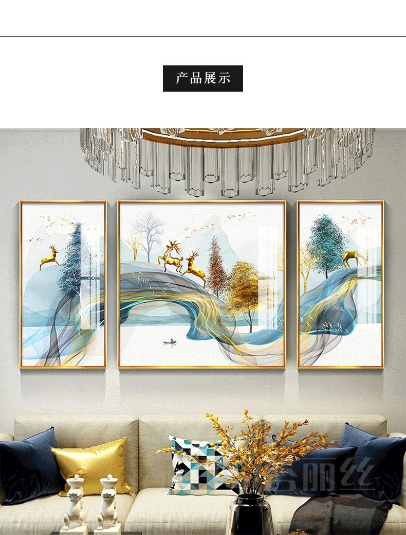 簡約現代客廳鉆石畫滿鉆沙發背景墻輕奢大氣點鉆十字繡抽象發財鹿1入