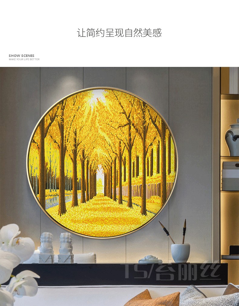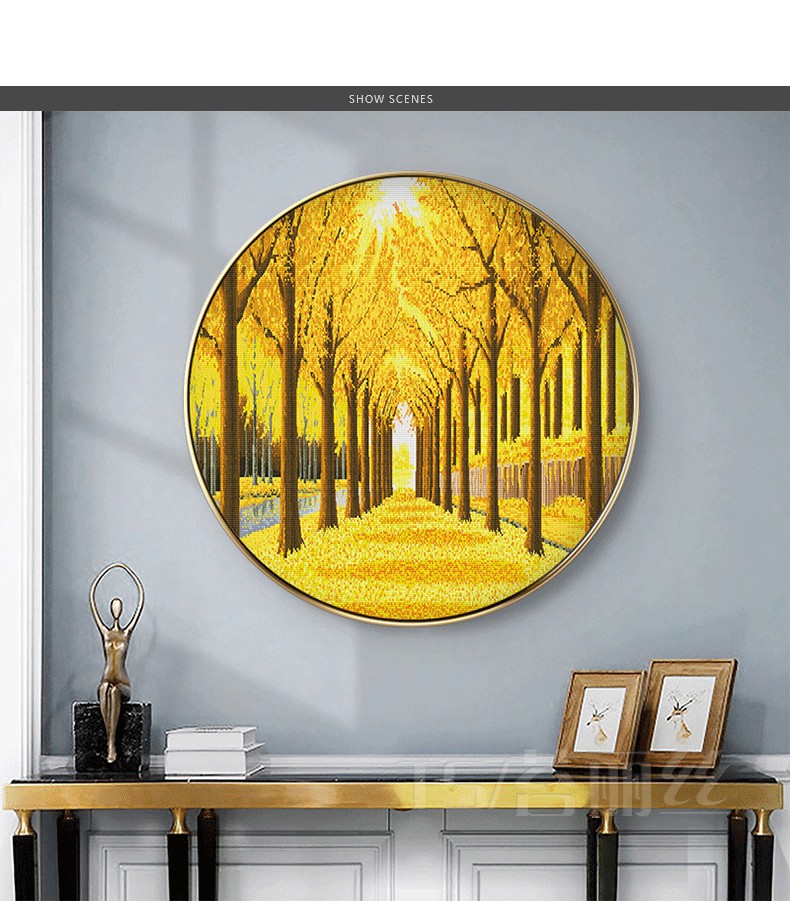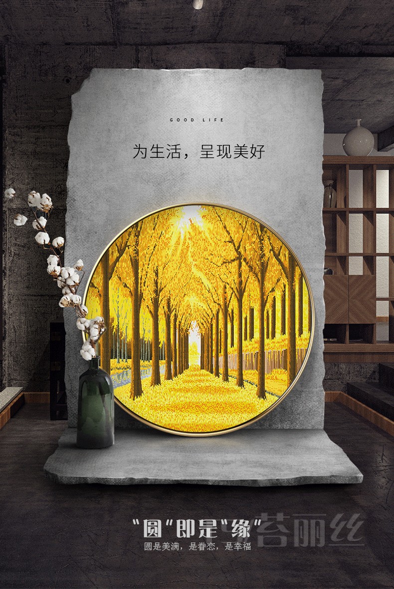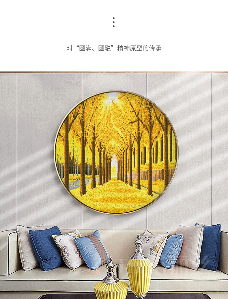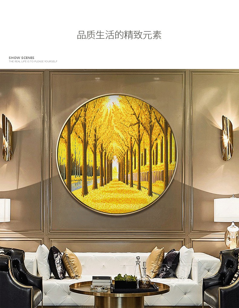 2019新款鉆石繡圓形現代中式客廳玄關黃金滿地貼鉆十字繡滿鉆石畫1入