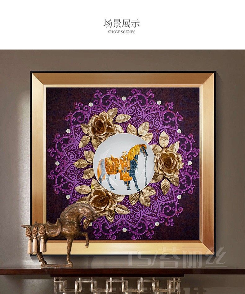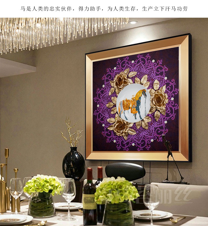 歐式玄關鉆石畫滿鉆新款客廳吉祥小馬點鉆十字繡餐廳鉆石繡磚石畫1入