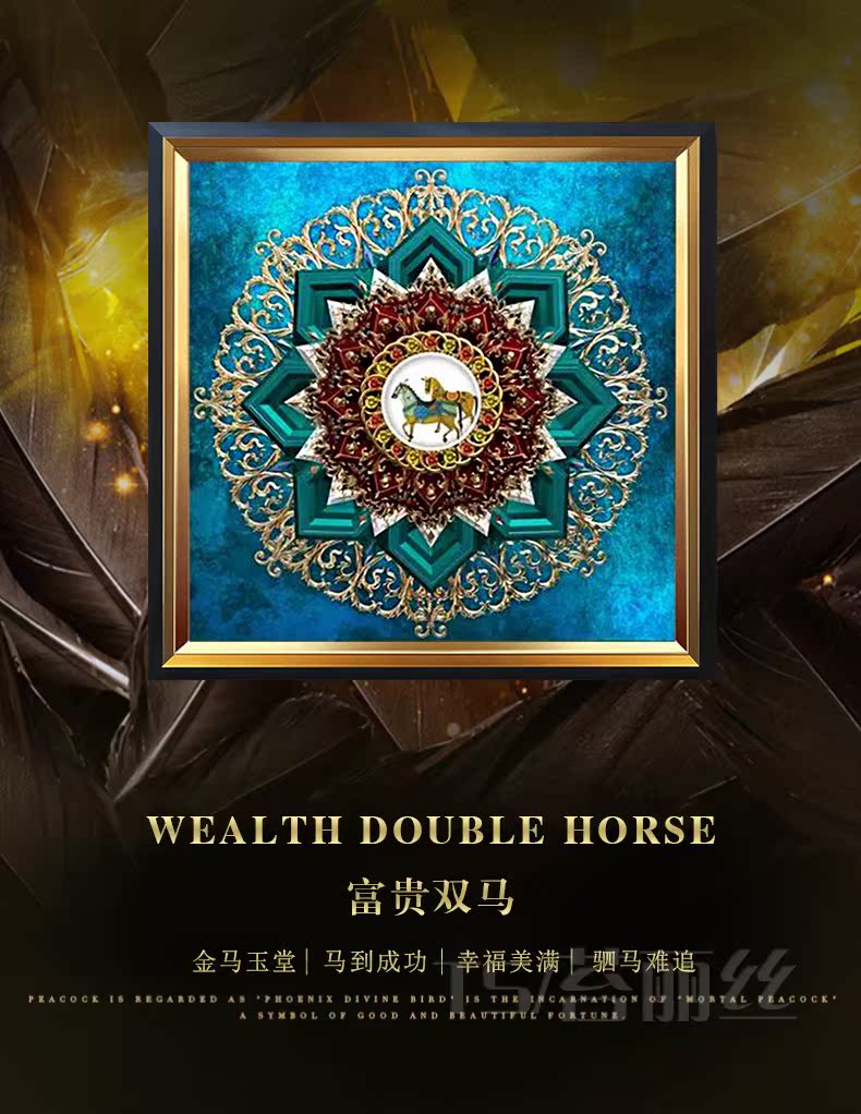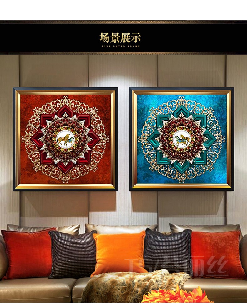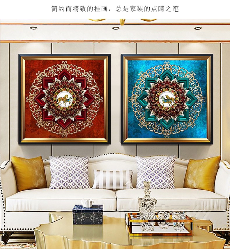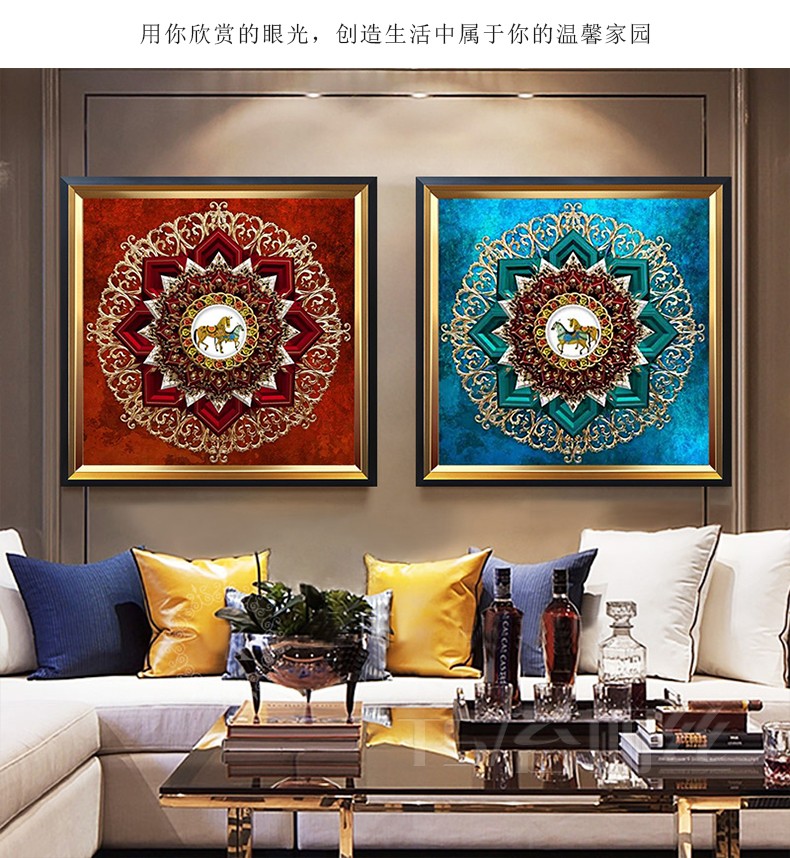 歐式5d鉆石畫滿鉆客廳掛畫粘鉆十字繡蓮花雙馬鉆石繡現代美式鉆繡1入
