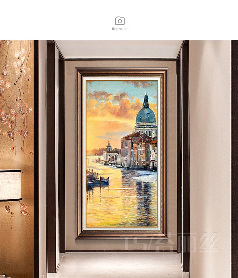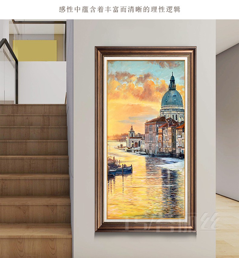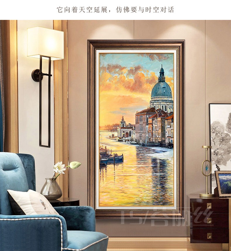 歐式建筑風景鉆石畫玄關豎版新款客廳地中海風情復古貼鉆十字繡5d1入