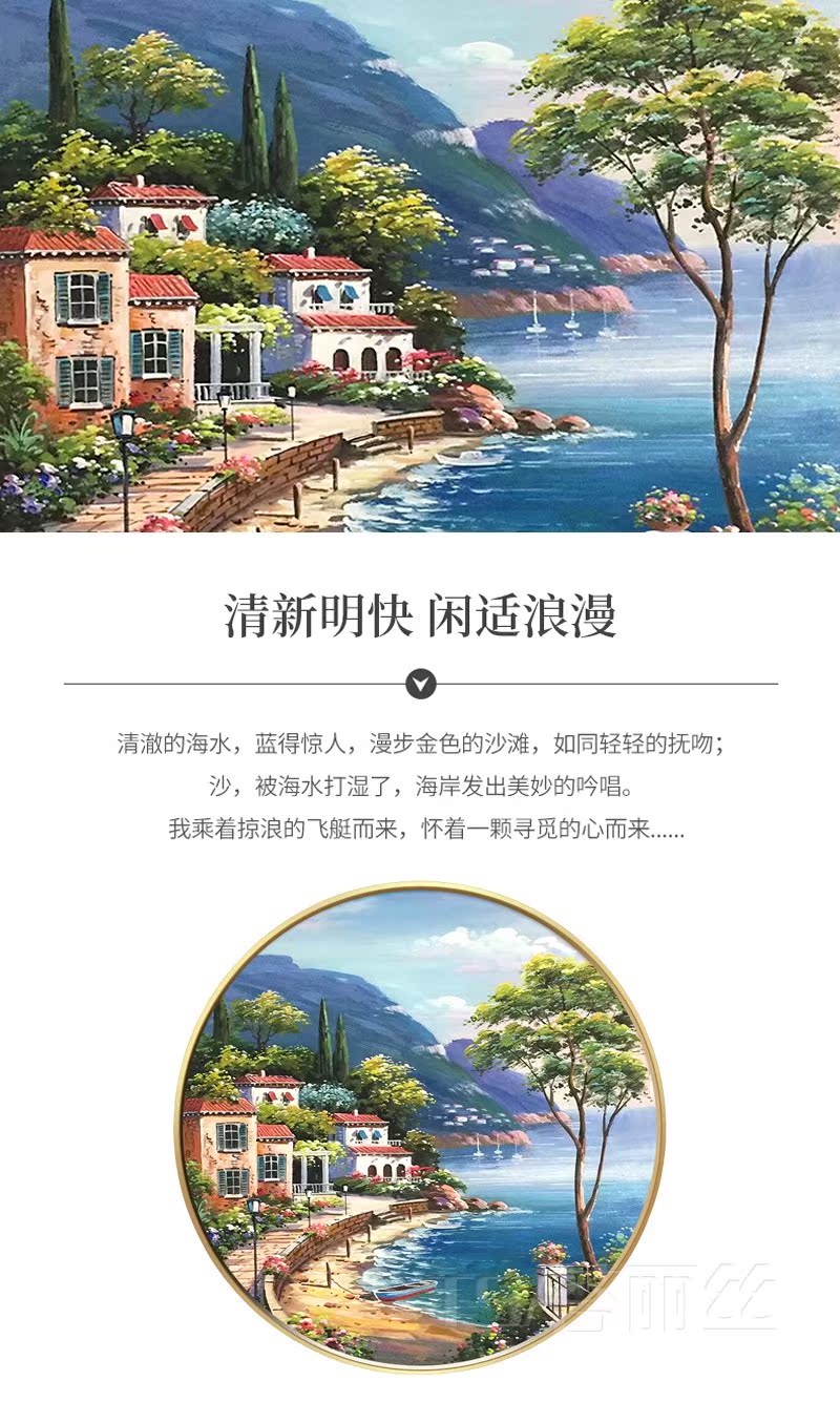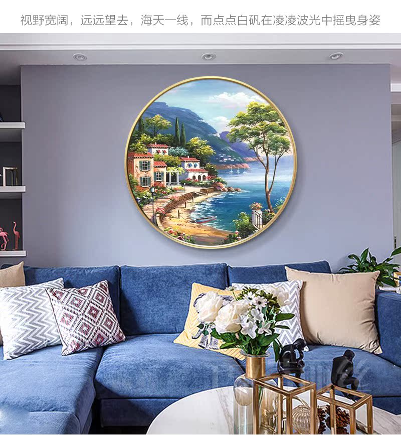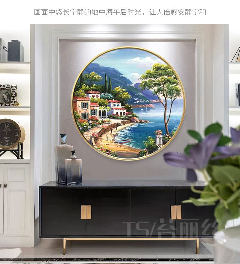 歐式客廳地中海風景鉆石畫滿鉆新款點鉆十字繡餐廳圓形鉆石繡玄關1入