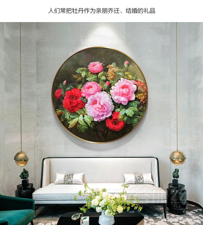 富貴牡丹花鉆石畫餐廳圓形十字繡小幅花卉客廳5d鉆石繡臥室磚石畫1入