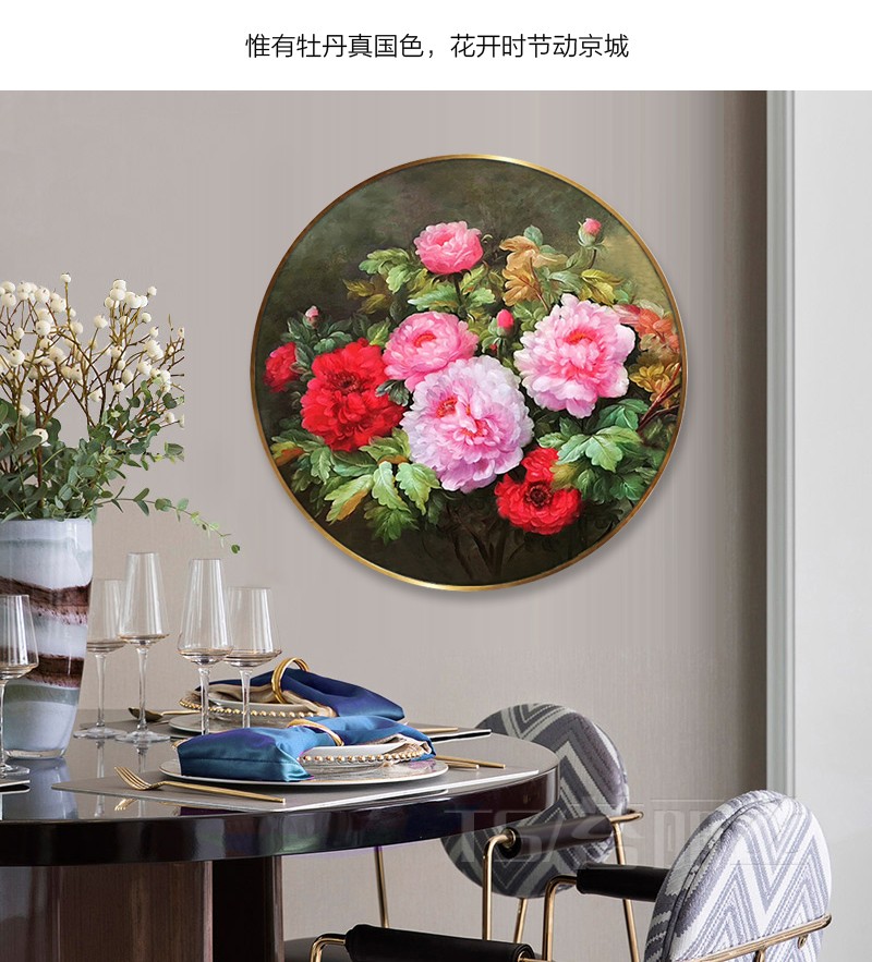 KT613320mm厚板白色框中號 直徑24CM美式客廳沙發背景墻裝飾畫歐式臥室壁畫掛畫餐廳玄關墻畫現代簡約