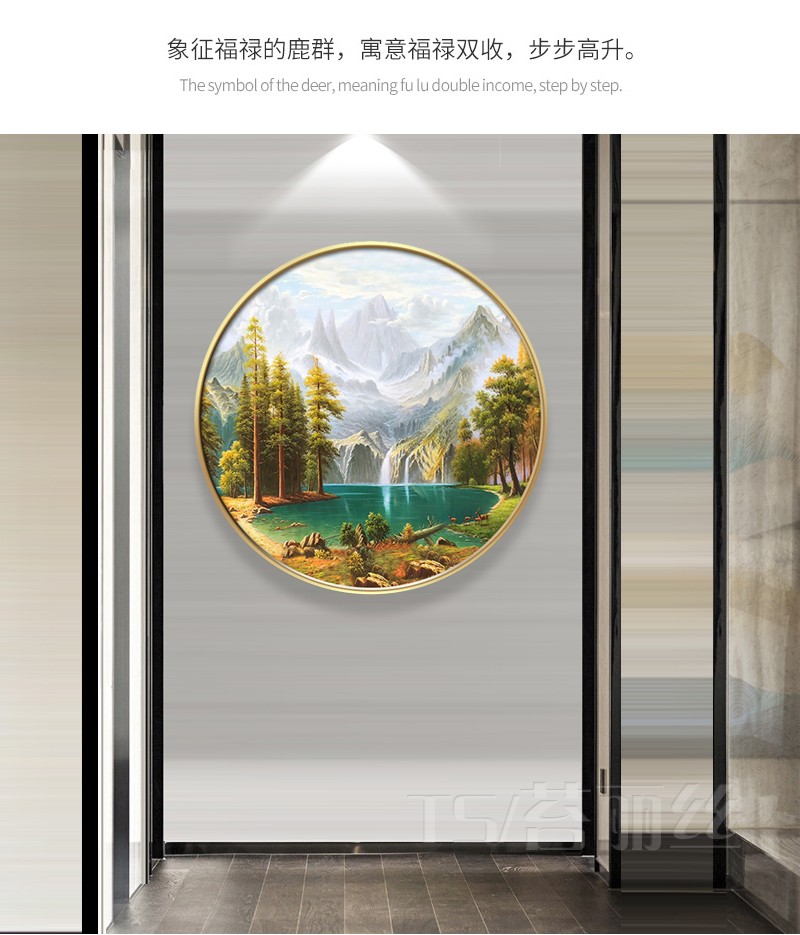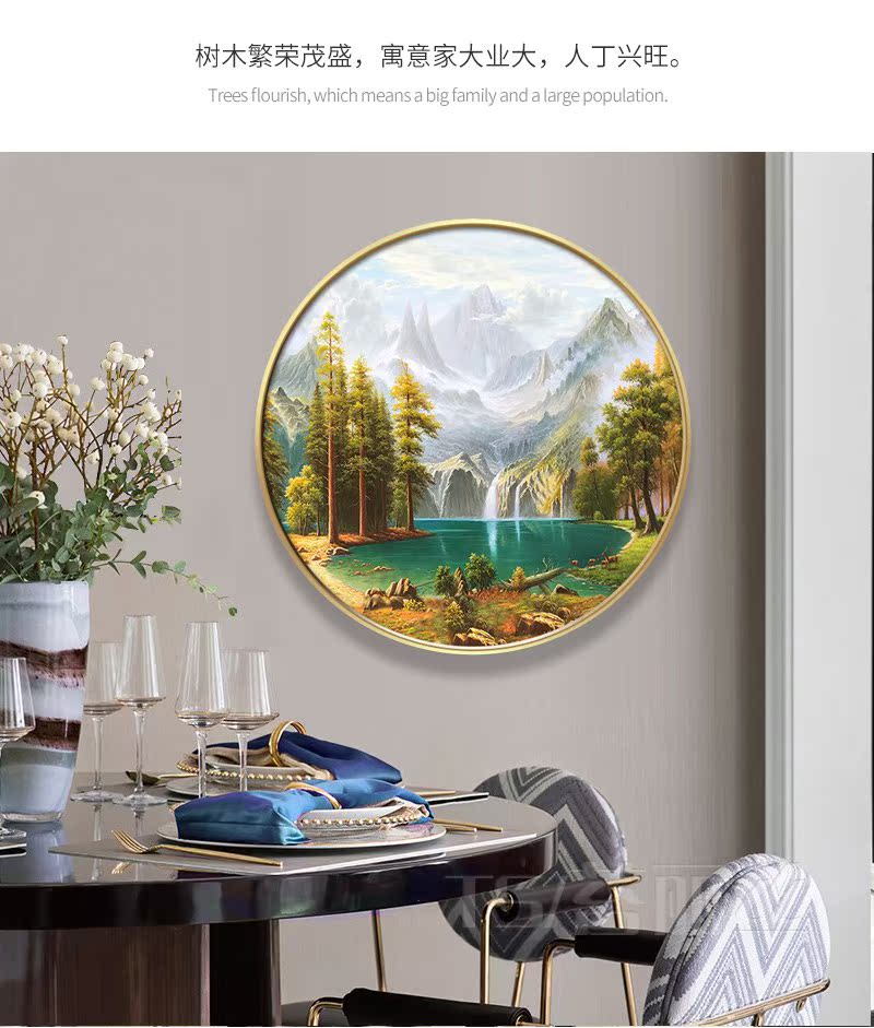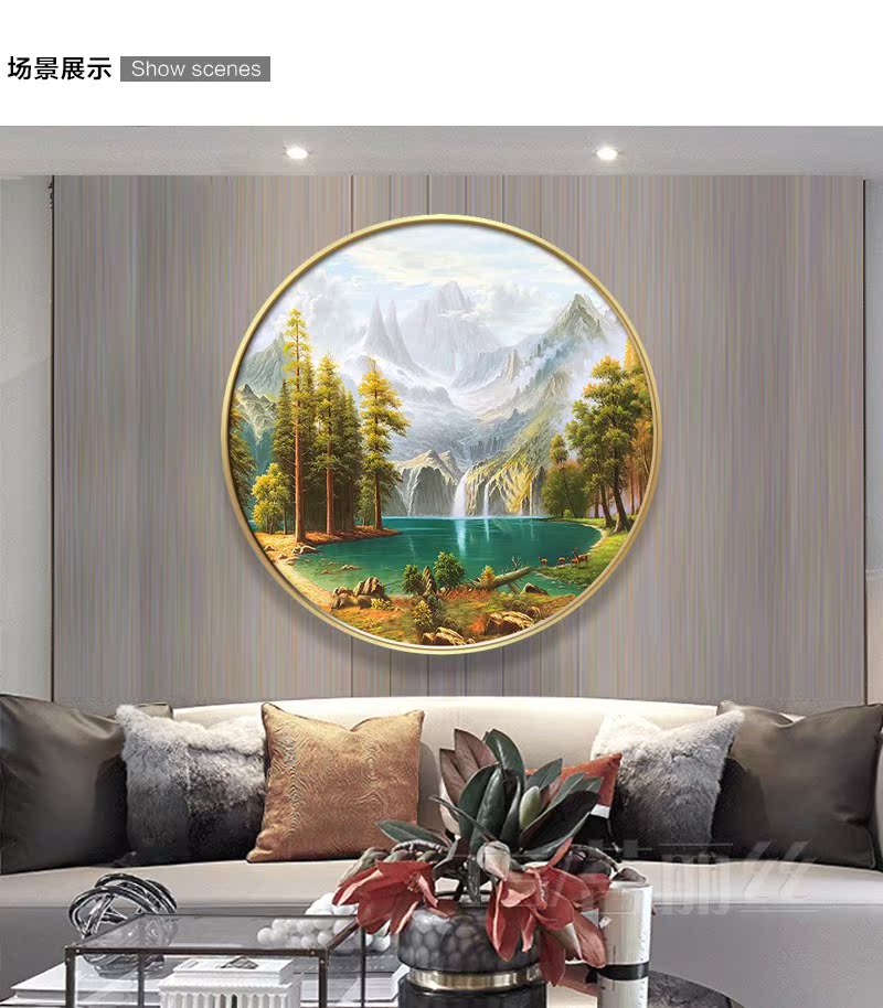 KT613320mm厚板白色框大號 直徑30CM美式客廳沙發背景墻裝飾畫歐式臥室壁畫掛畫餐廳玄關墻畫現代簡約
