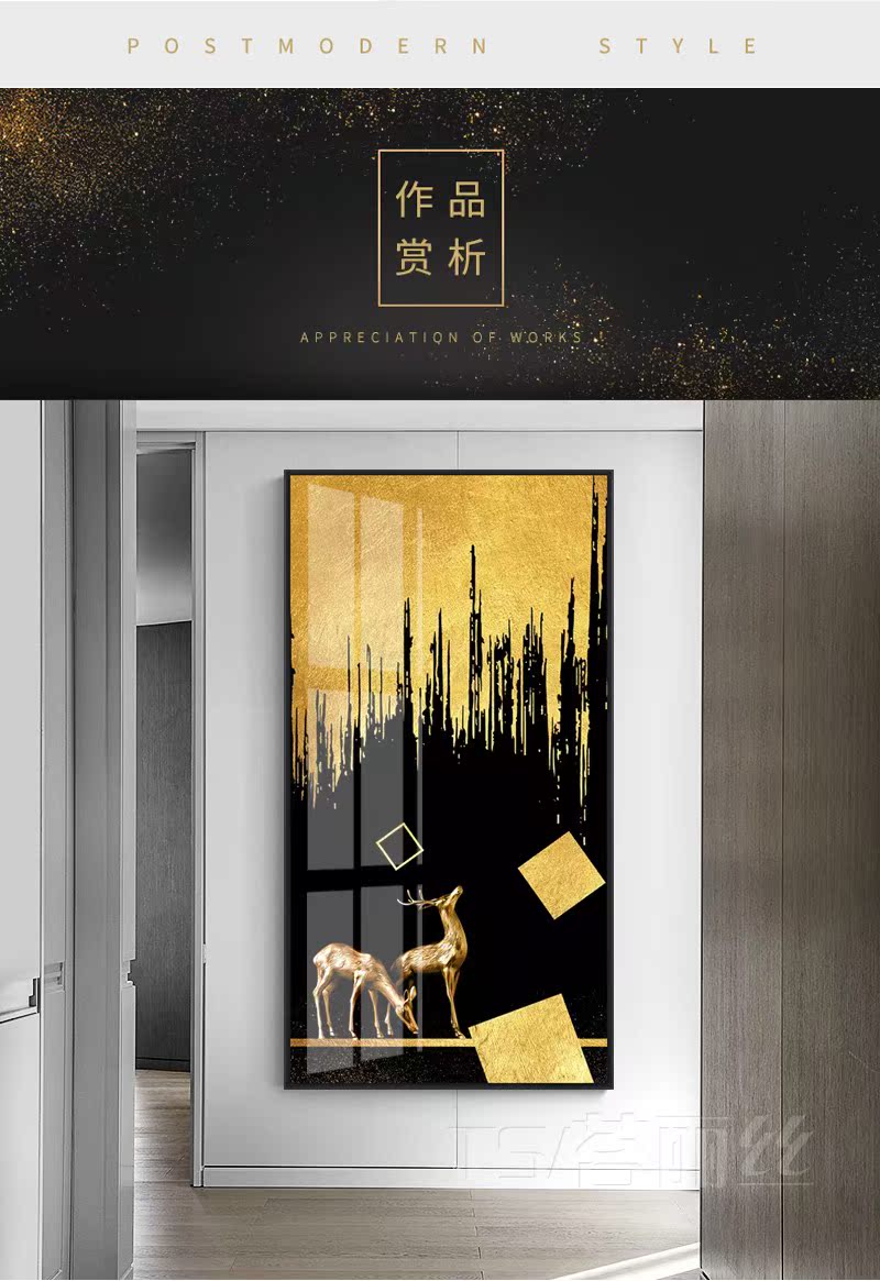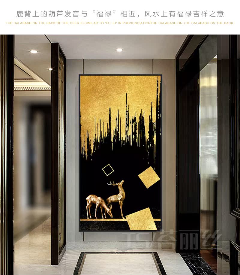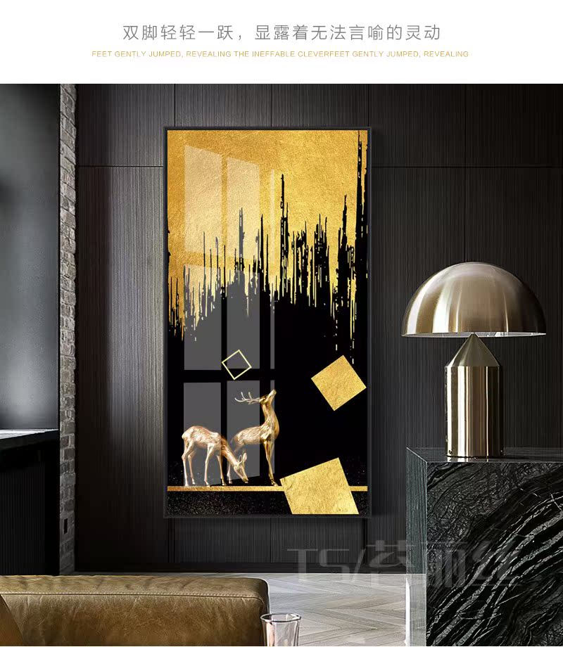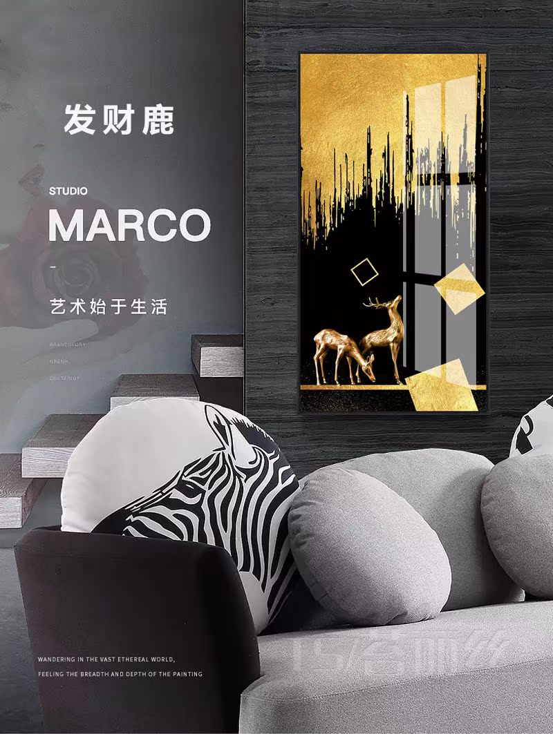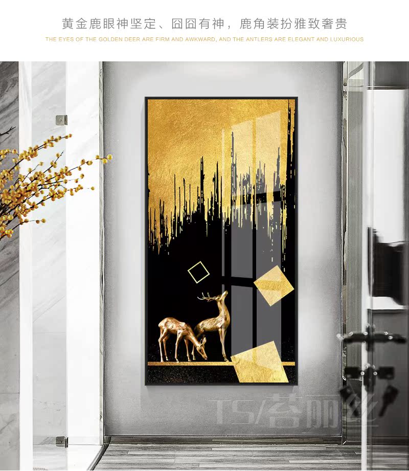 北歐簡約輕奢鉆石小畫滿鉆新款玄關走廊過道發財鹿客廳豎版十字繡1入