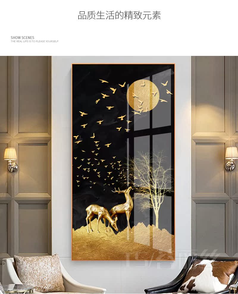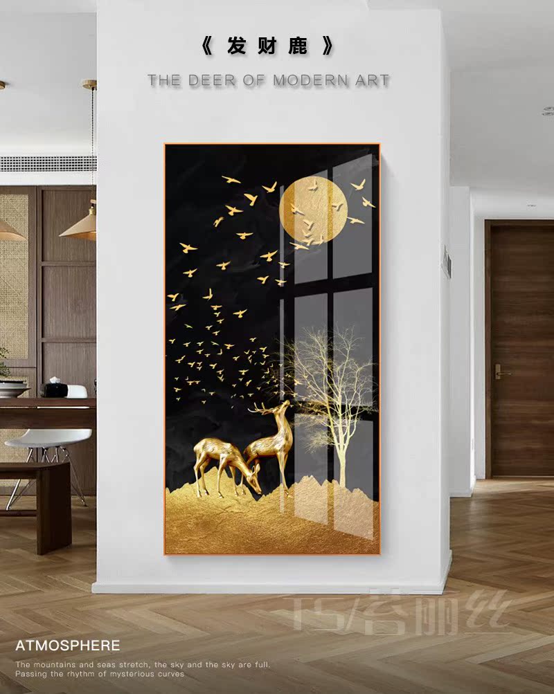北歐創意鉆石畫玄關豎版發財樹麋鹿客廳簡約現代過道5d貼鉆十字繡1入