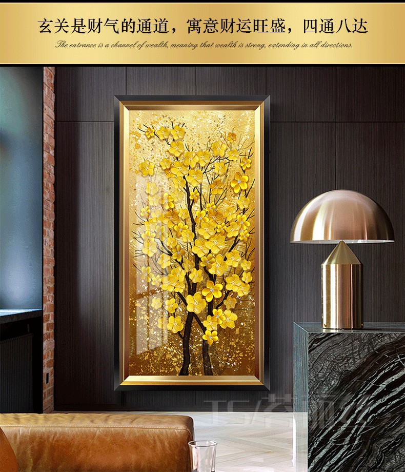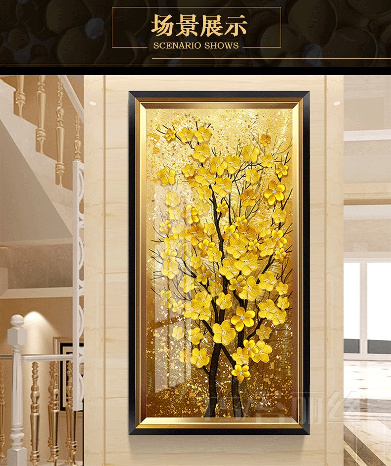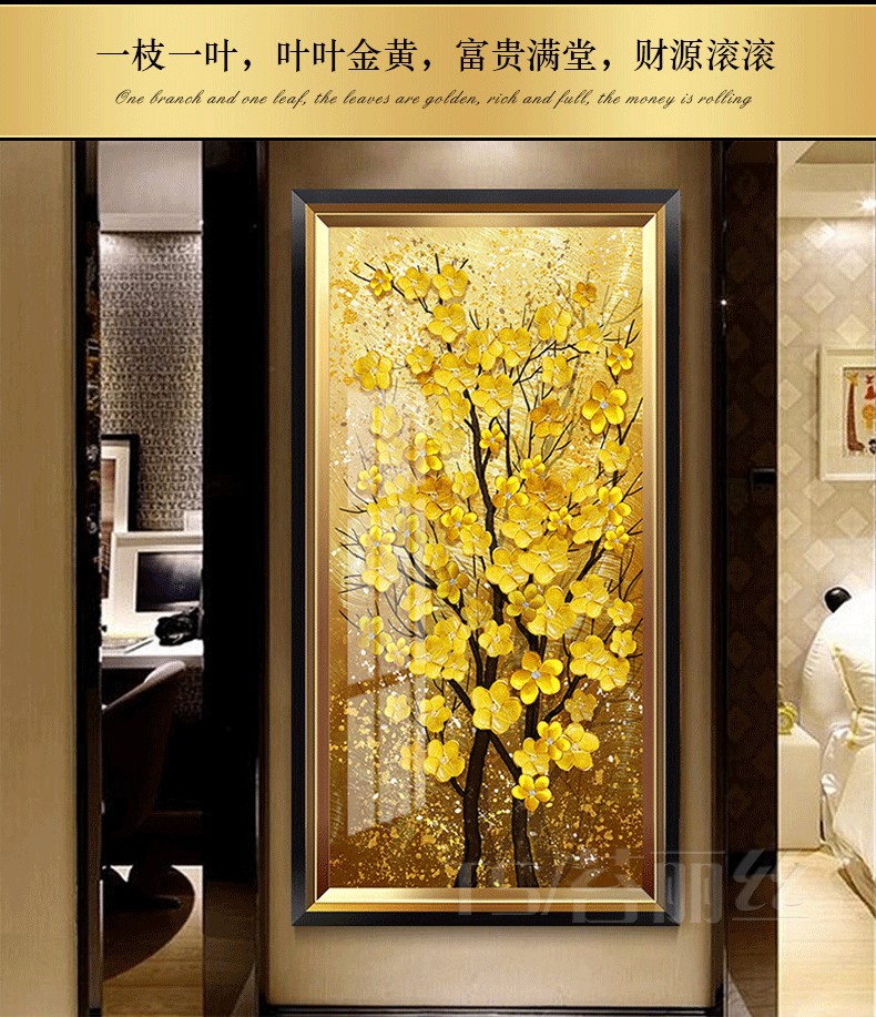歐式鉆石畫玄關豎版現代簡約客廳新款點鉆十字繡發財樹5d貼鉆石繡1入