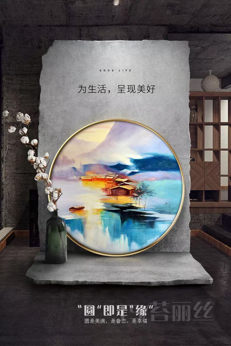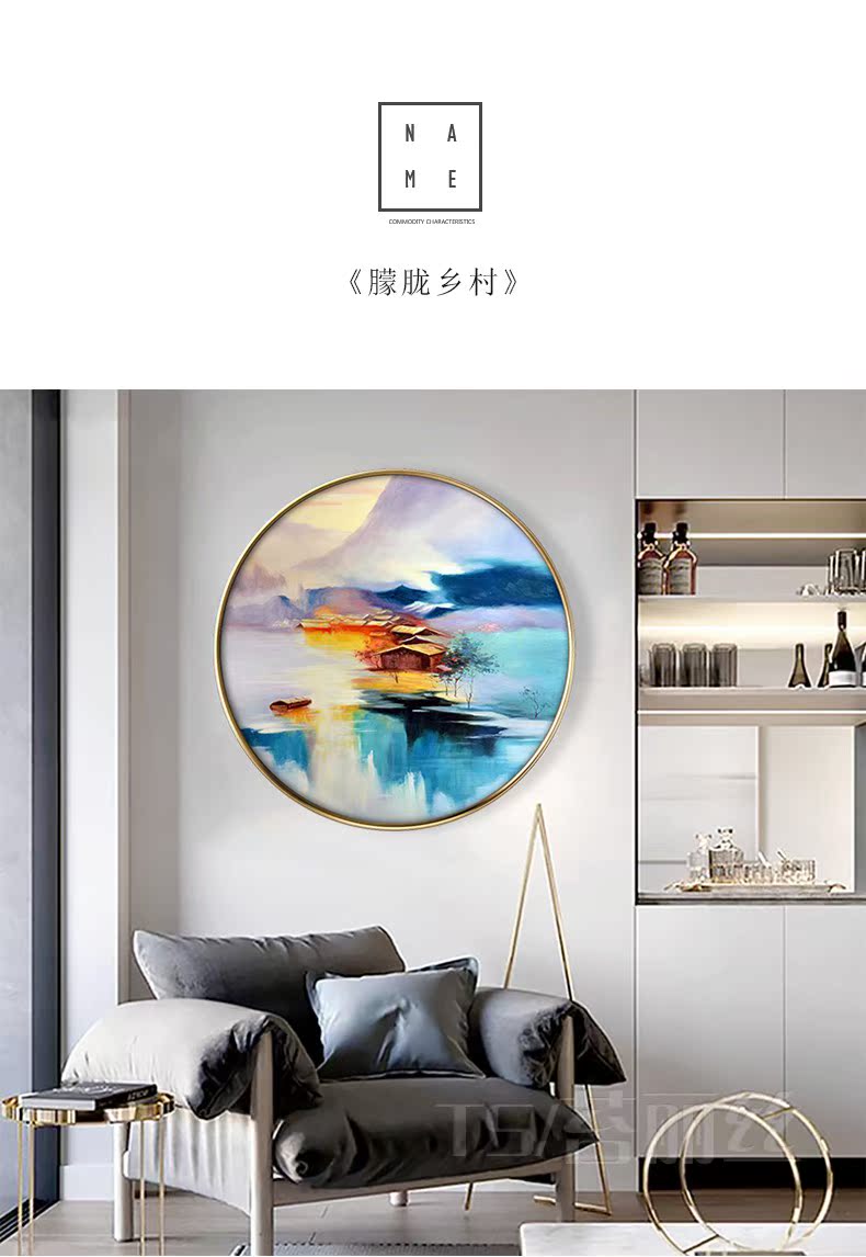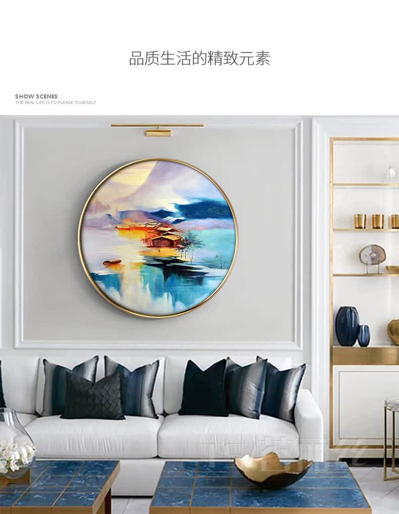 KT613320mm厚板白色框大號 直徑30CM美式客廳沙發背景墻裝飾畫歐式臥室壁畫掛畫餐廳玄關墻畫現代簡約