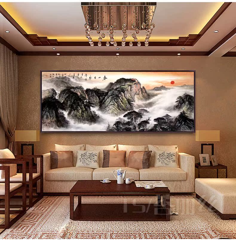有山有水版泰山日出圖十字繡線繡新款客廳滿繡5d精準印花風水國畫1入