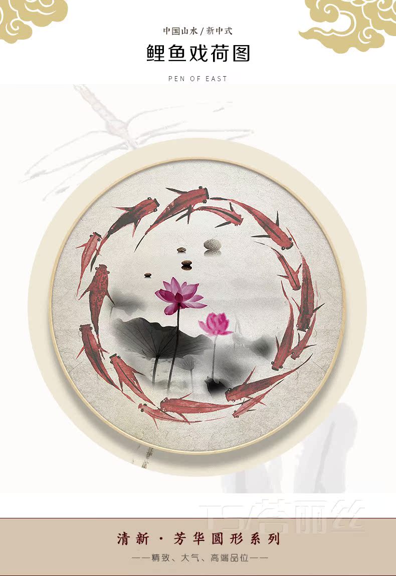 新中式圓形鉆石畫滿鉆連年有余圖十字繡磚石畫玄關客廳5d鉆石繡1入