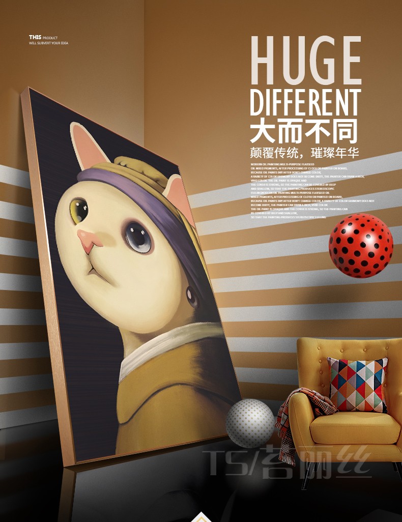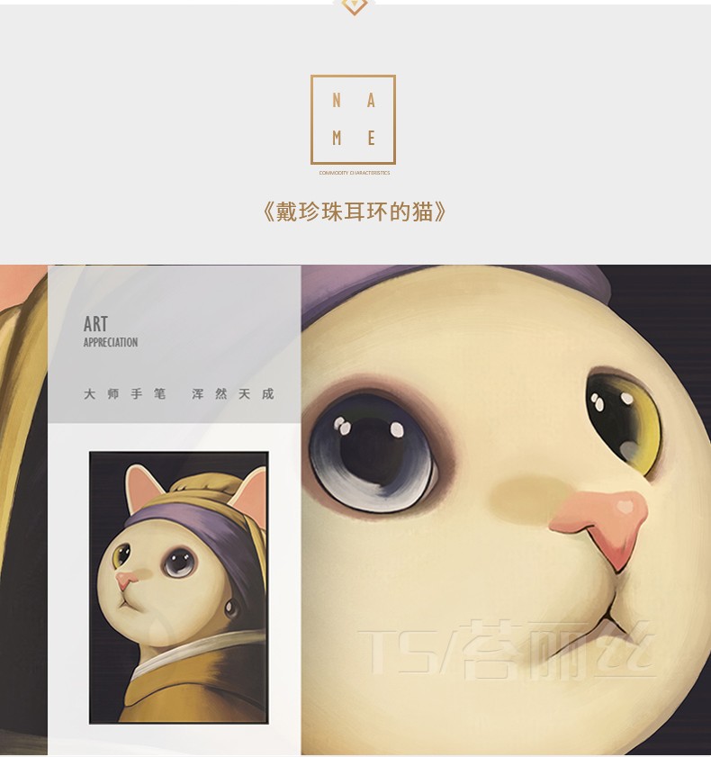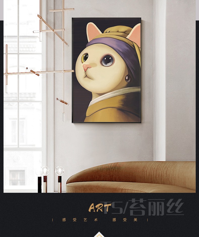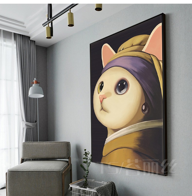 戴珍珠耳環的少女鉆石畫小眾藝術貓北歐客廳簡約玄關DIY鉆石繡5d1入