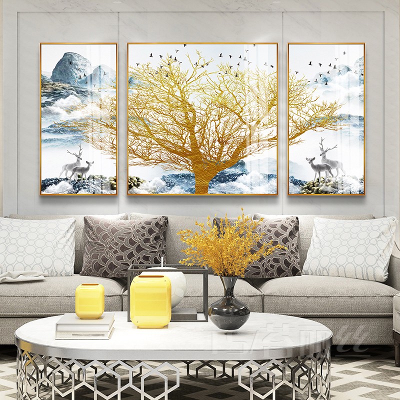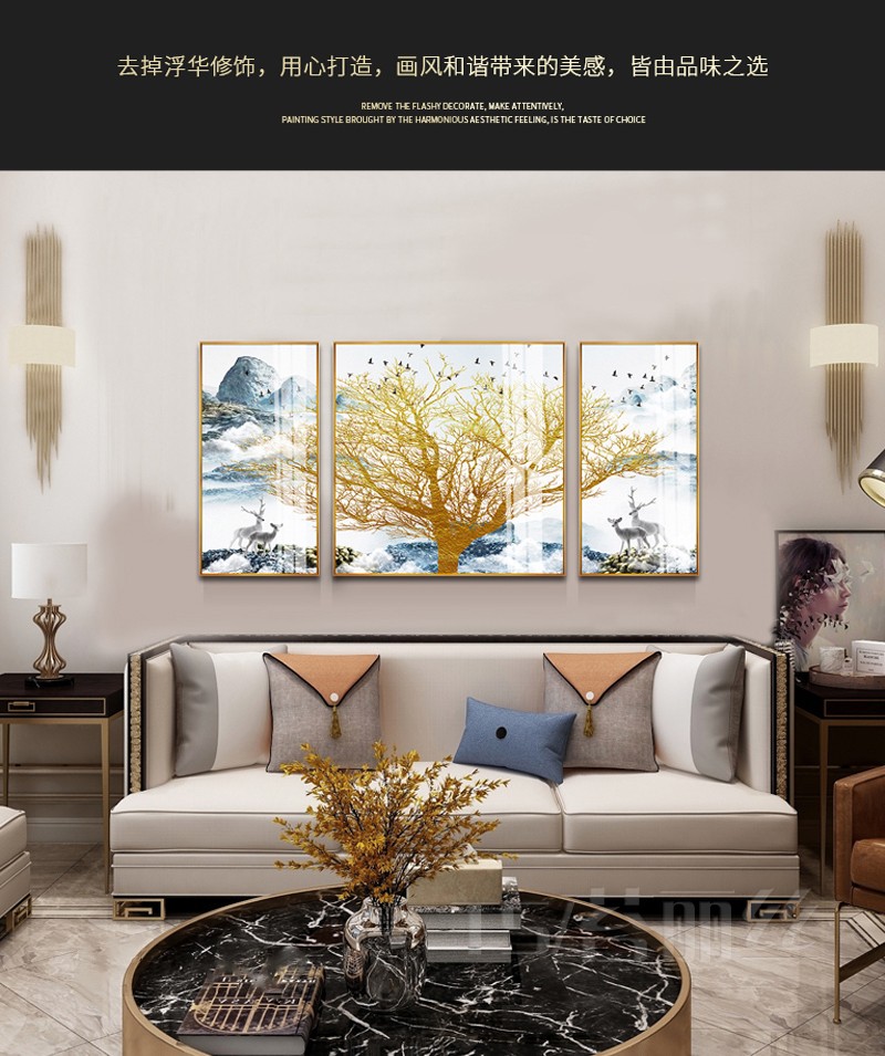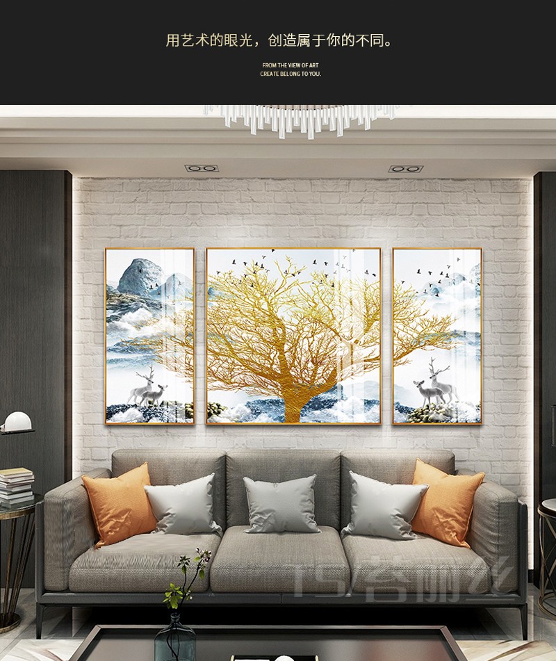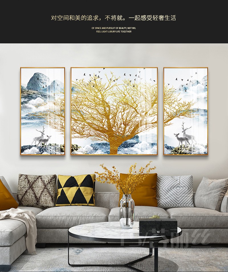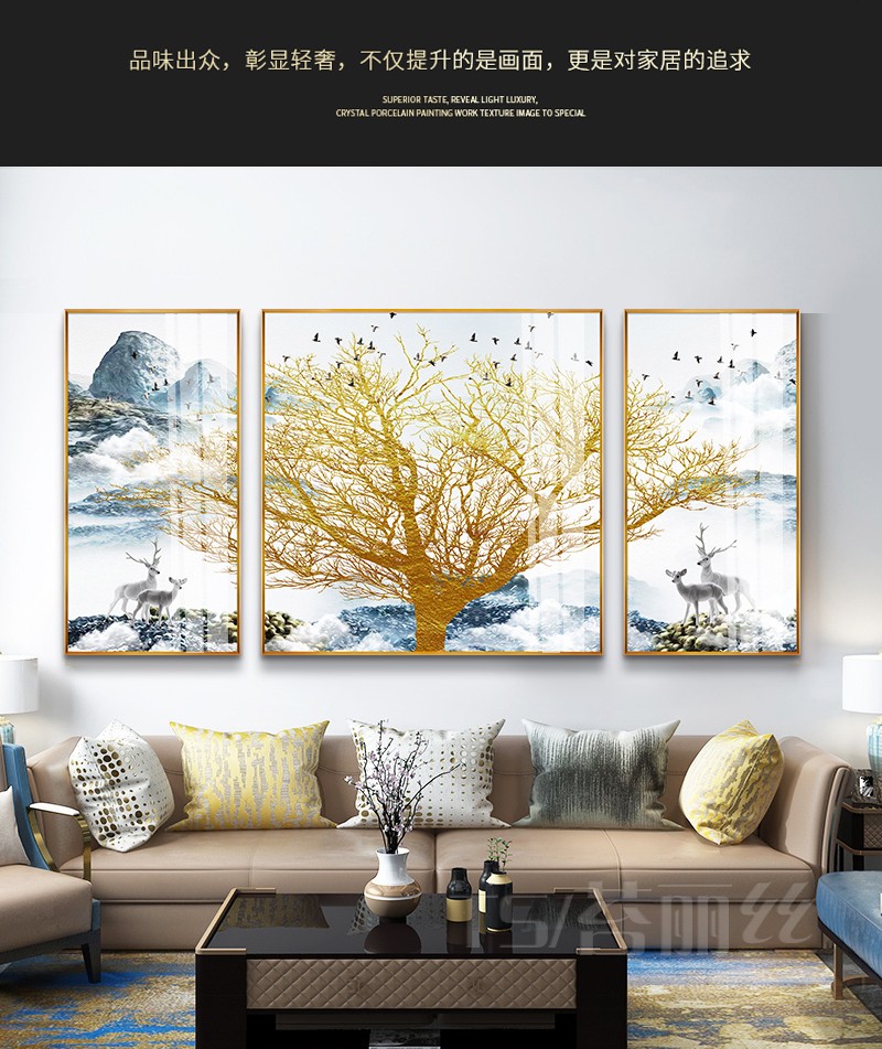 輕奢現代簡約發財樹麋鹿鉆石畫滿鉆新款麋鹿貼鉆十字繡北歐創意畫1入