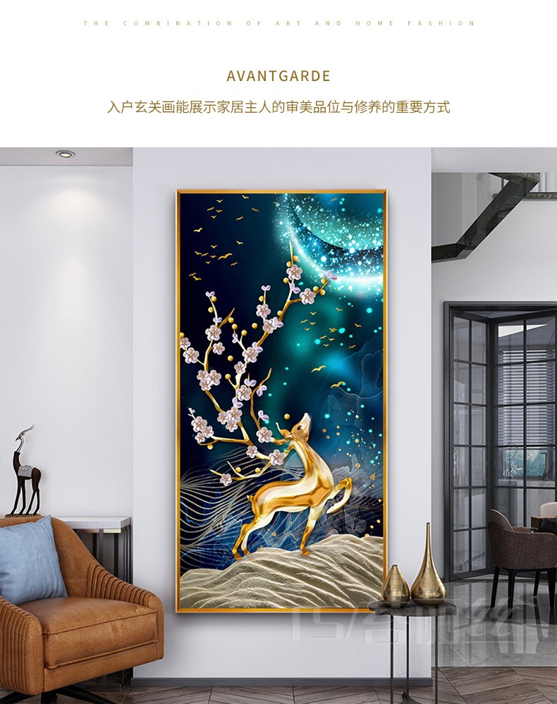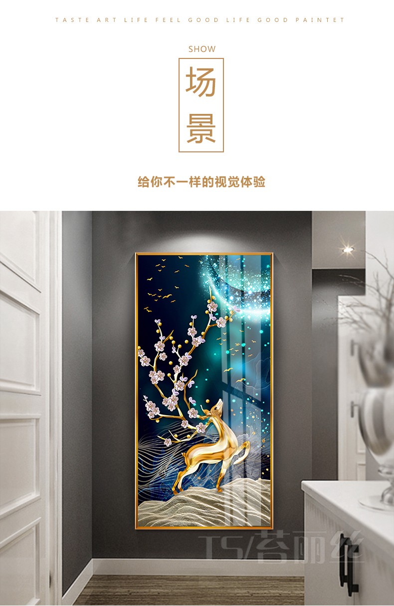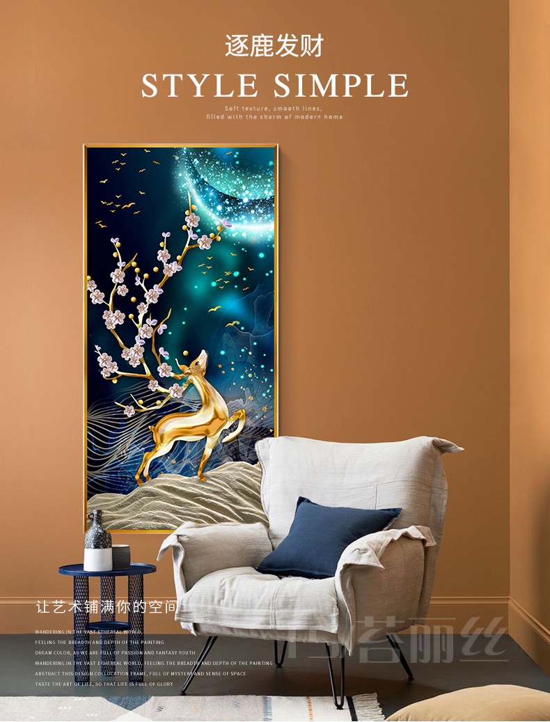 鉆石繡玄關豎版滿鉆新款鉆石畫發財鹿現代簡約走廊過道貼鉆十字繡1入