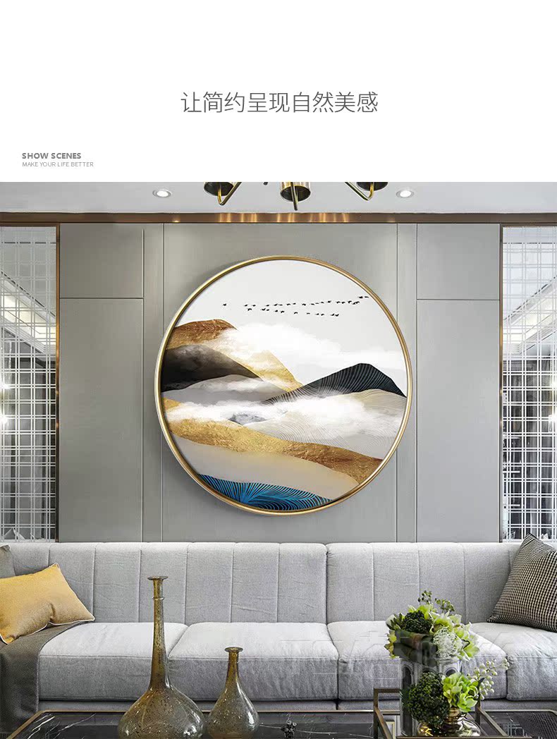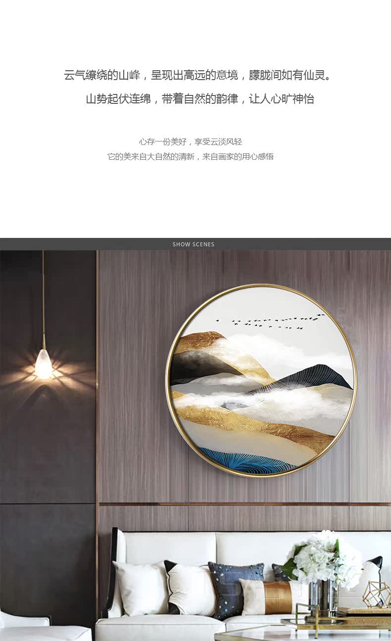 KT613320mm厚板白色框中號 直徑24CM美式客廳沙發背景墻裝飾畫歐式臥室壁畫掛畫餐廳玄關墻畫現代簡約