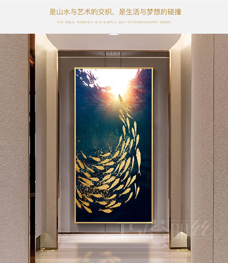 簡約現代客廳游魚鉆石畫滿鉆玄關十字繡鉆石繡豎版走廊過道磚石畫1入