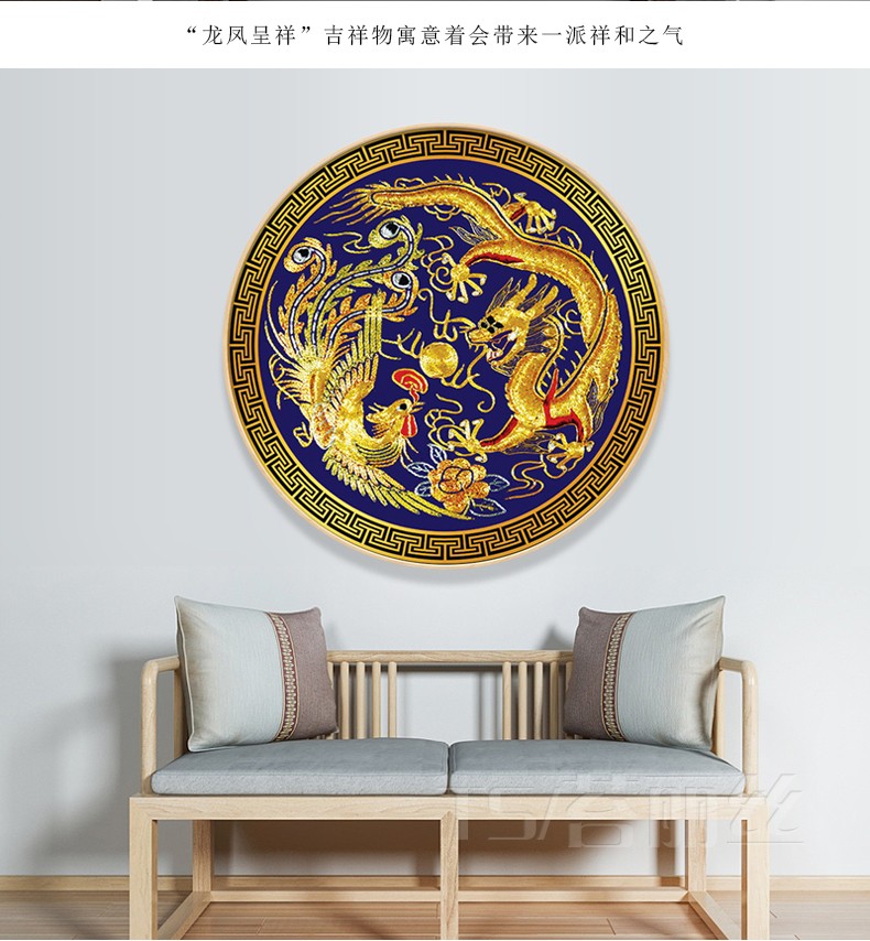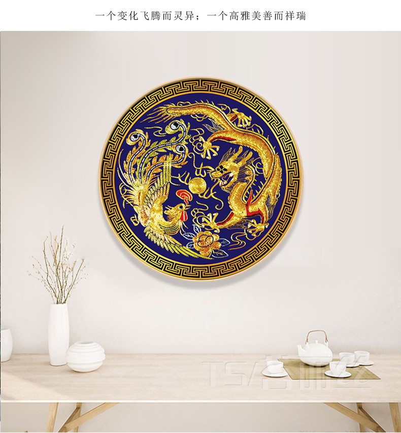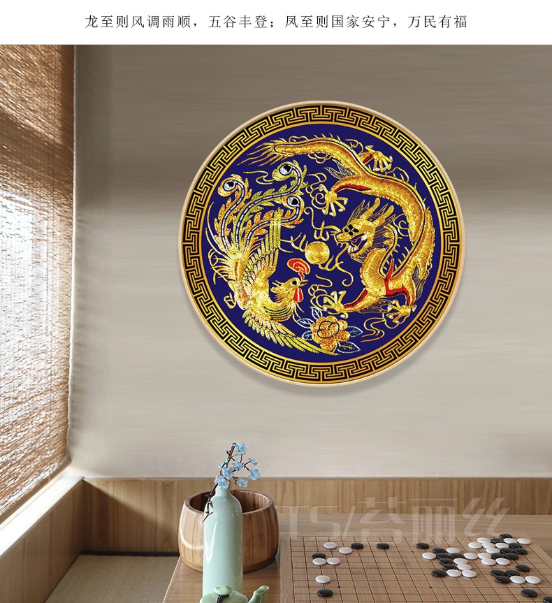 圓形十字繡龍鳳呈祥全繡小件手工禮物簡單繡古風圖案客廳玄關刺繡1入