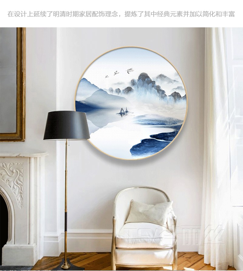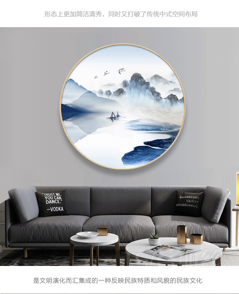 KT613320mm厚板白色框中號 直徑24CM美式客廳沙發背景墻裝飾畫歐式臥室壁畫掛畫餐廳玄關墻畫現代簡約