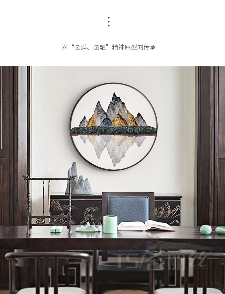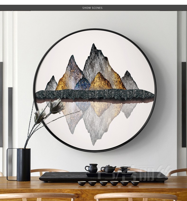 新款現代北歐簡約客廳圓形十字繡山水倒影禪意書房臥室棉線刺繡版1入