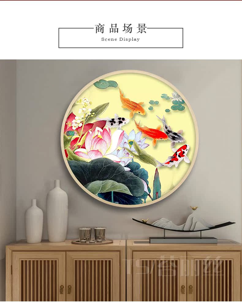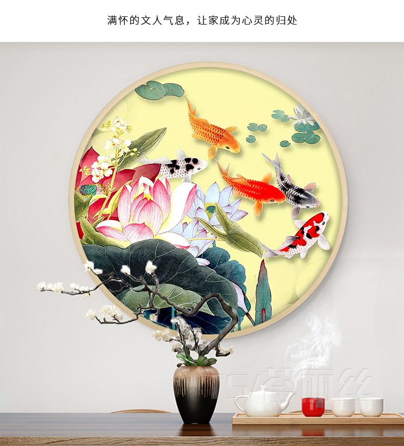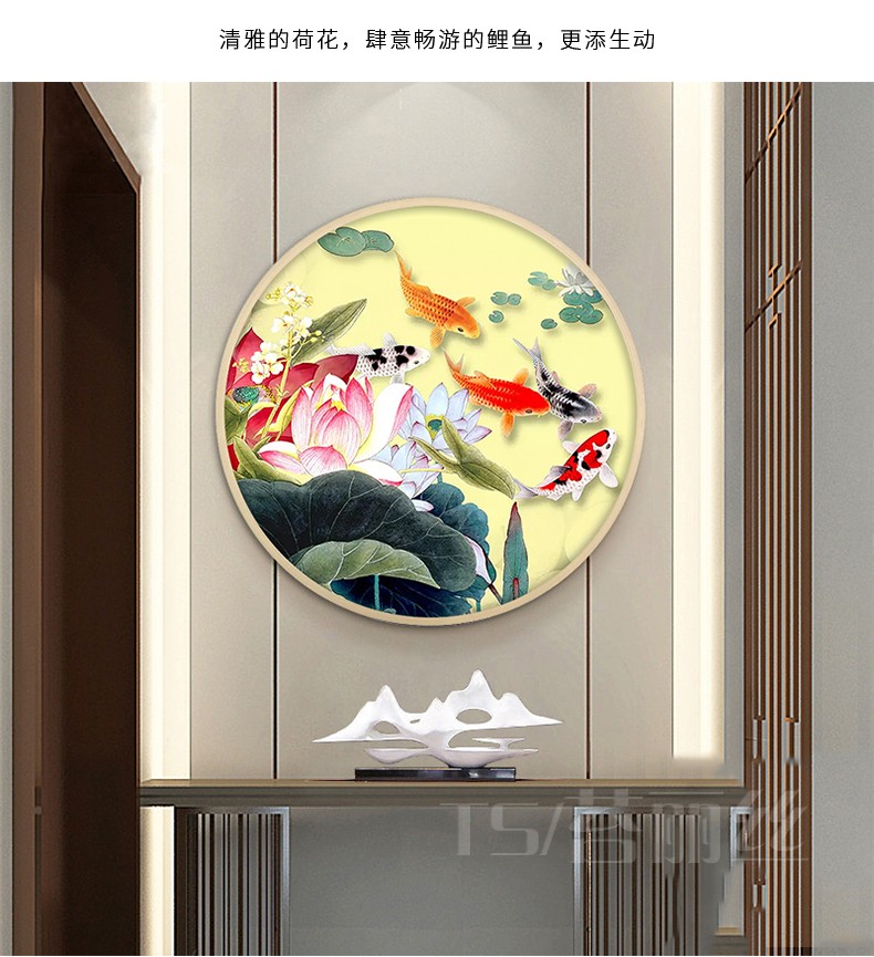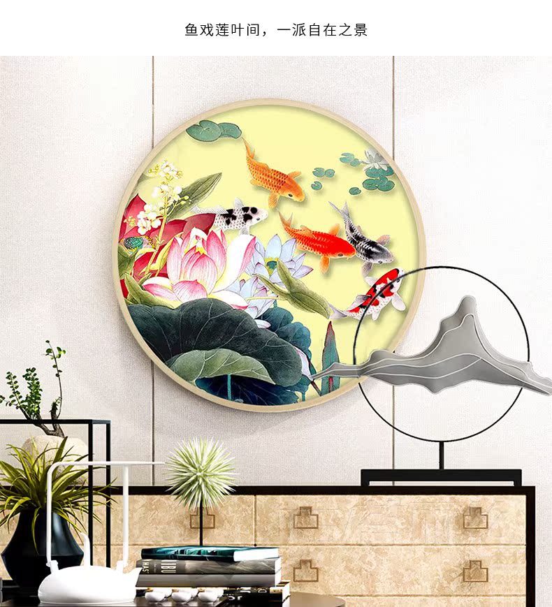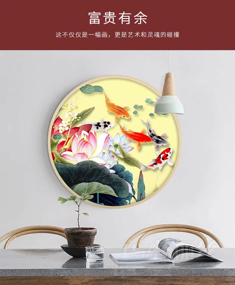 連年有余圓形鉆石畫滿鉆新款現代簡約荷花點鉆十字餐廳鯉魚鉆石繡1入