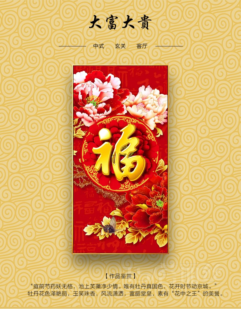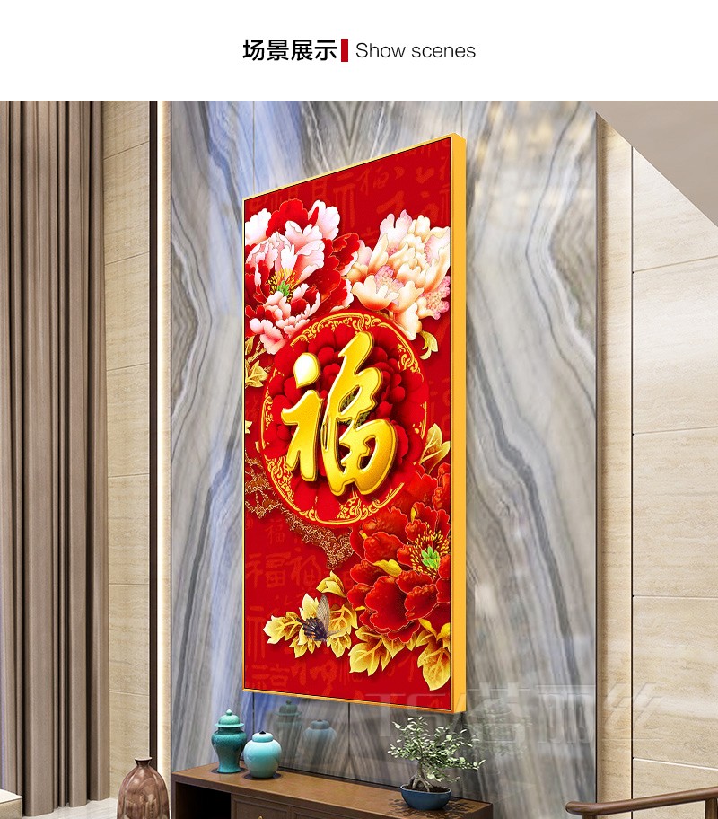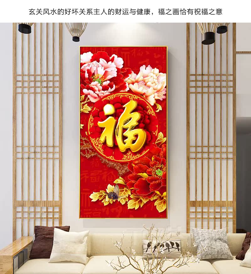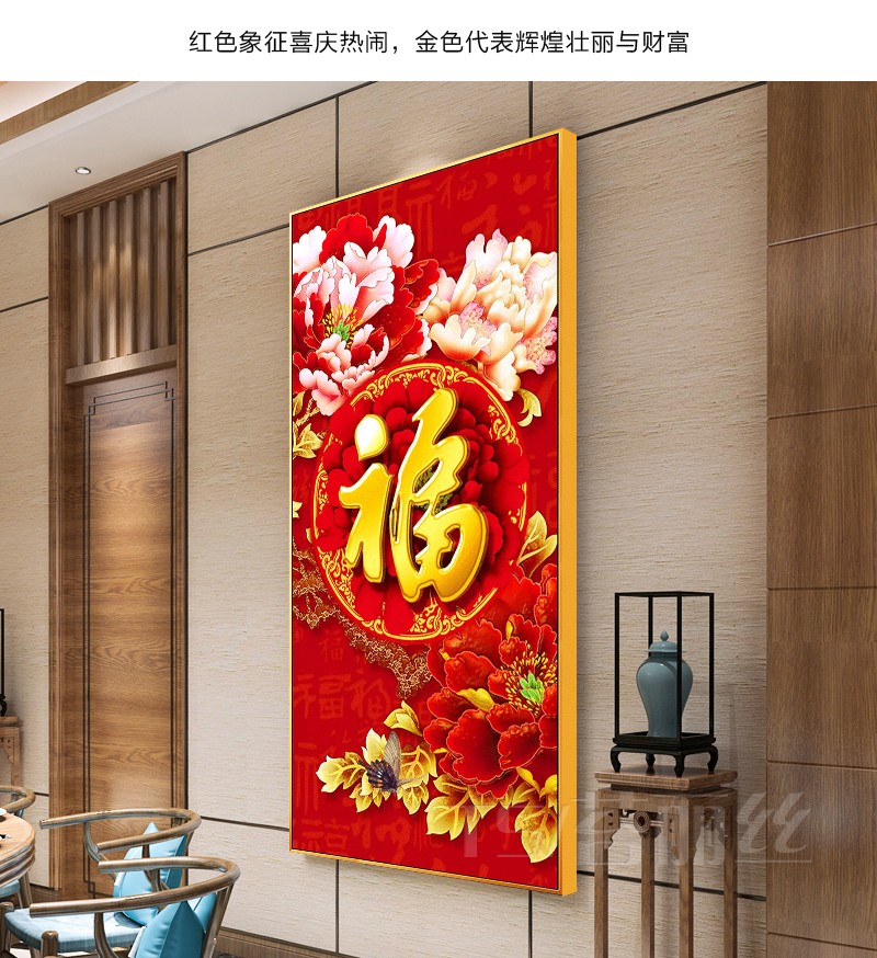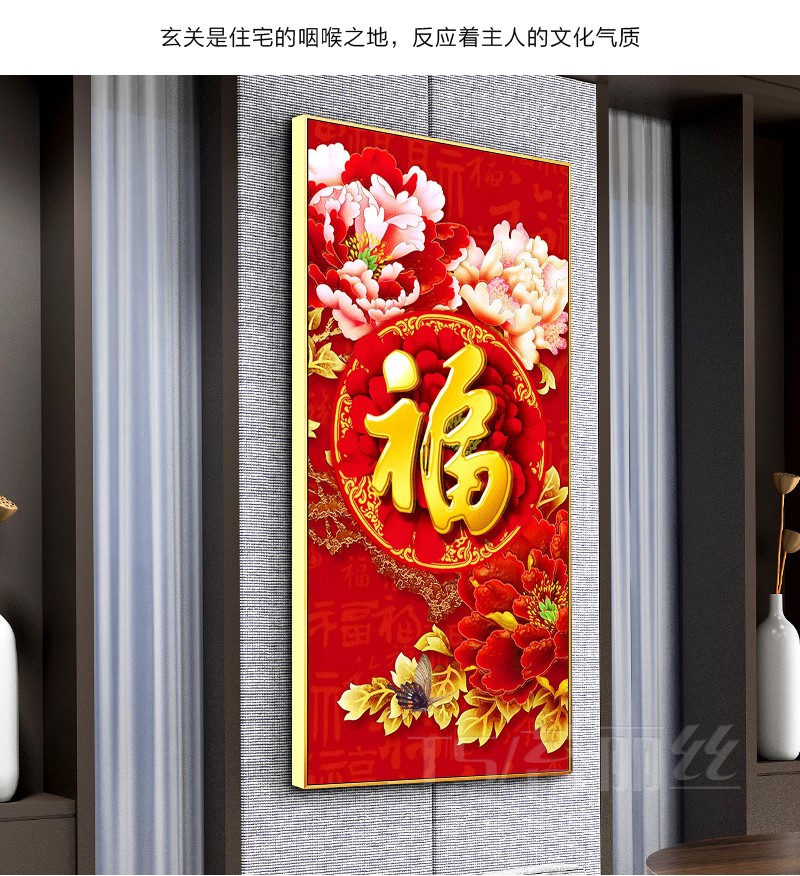 鉆石繡2019新款玄關豎版福字鉆石畫滿鉆中國風喜慶大紅牡丹鉆石繡1入