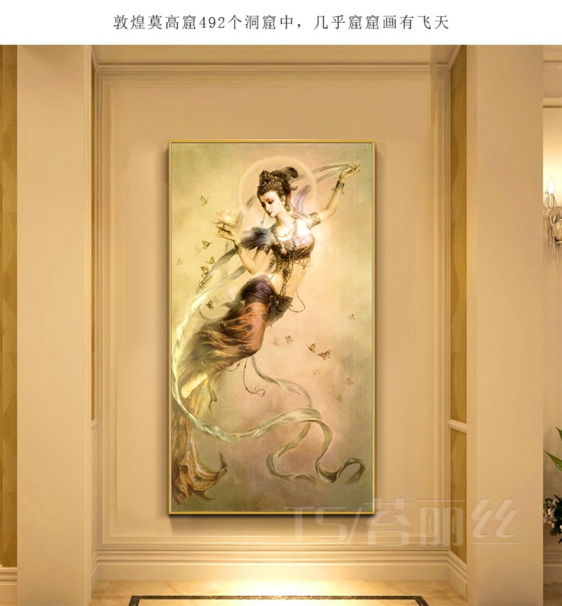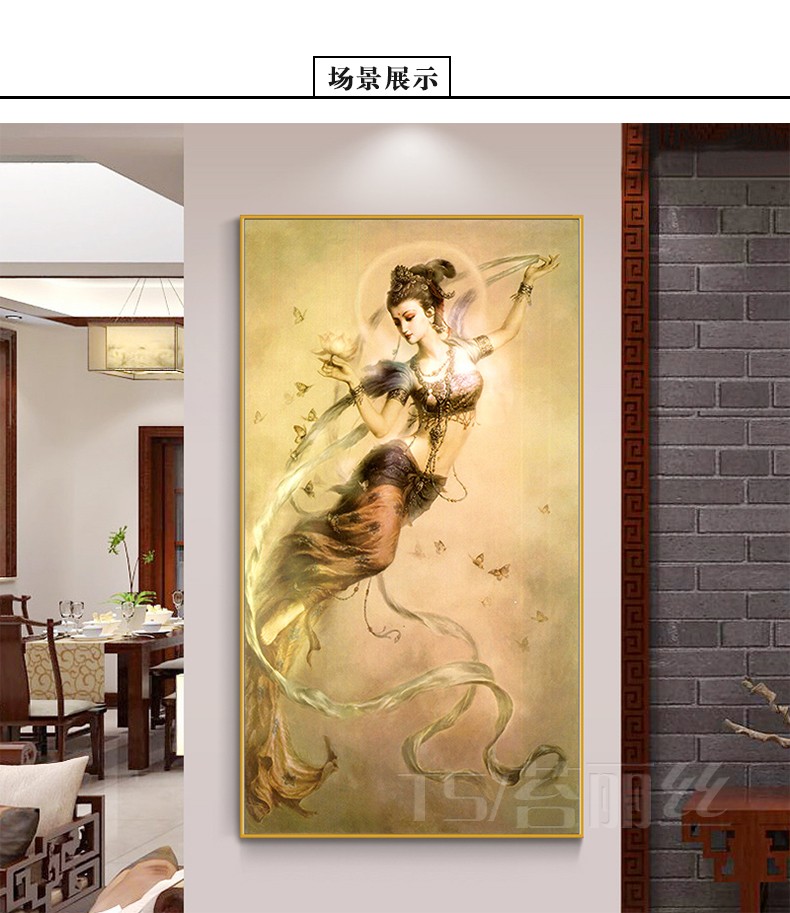 敦煌仙女散花十字繡滿鉆石畫玄關古典人物藝術貼鉆繡豎版5d鉆石繡1入