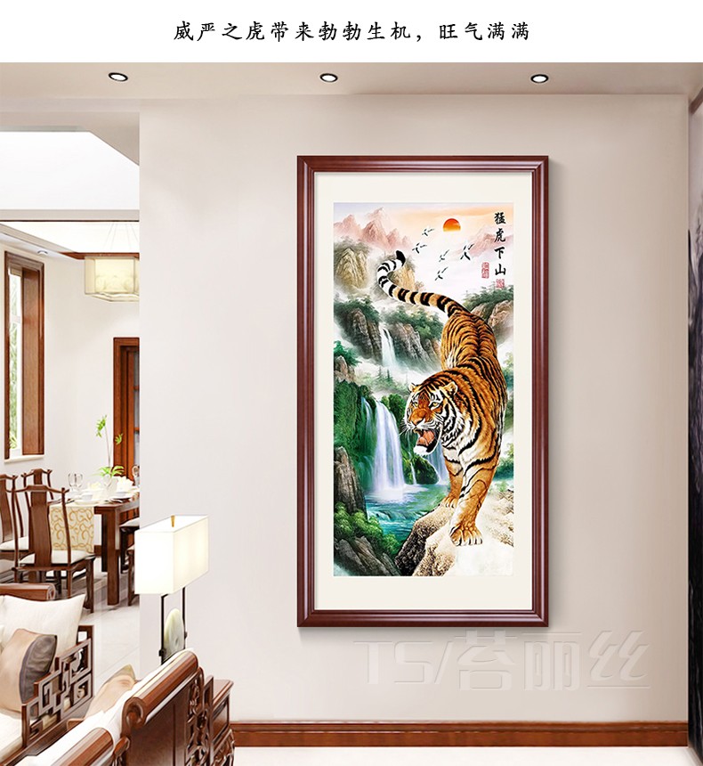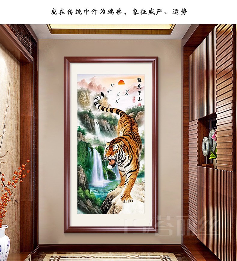 十字繡玄關豎版新款2019線繡猛虎下山動物入戶客廳走廊滿繡棉線繡1入
