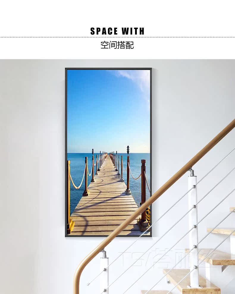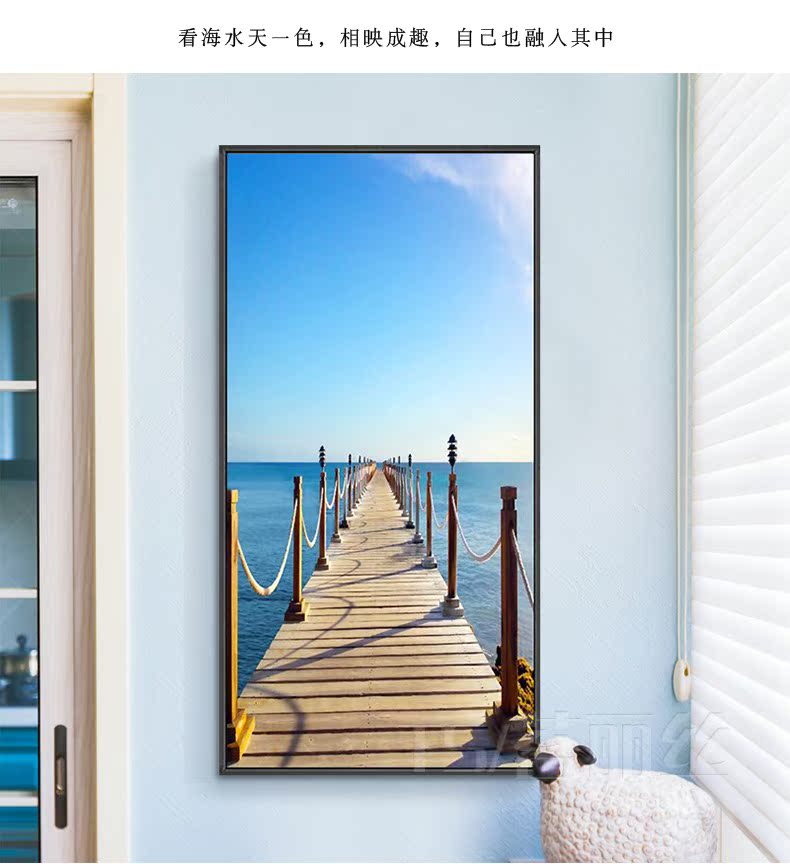 簡約現代客廳十字繡線繡玄關豎版海邊碼頭風景滿繡新手簡單繡刺繡1入