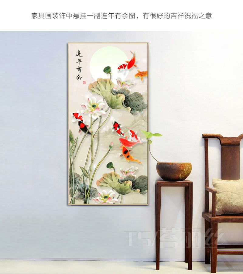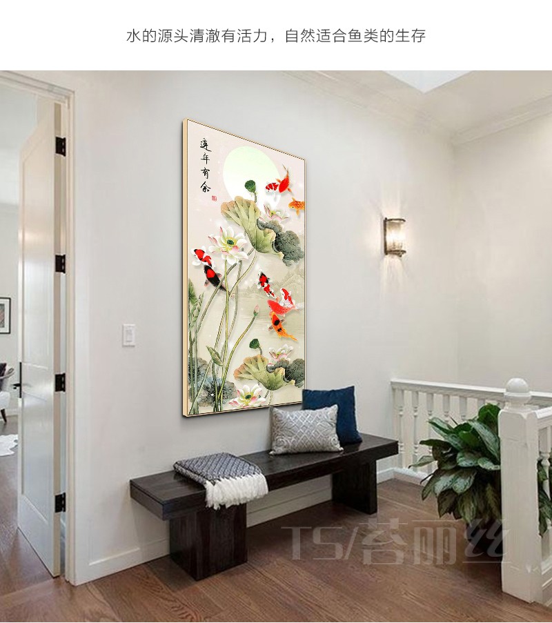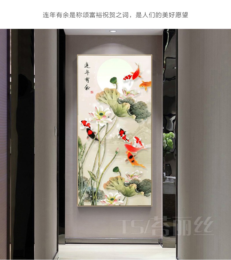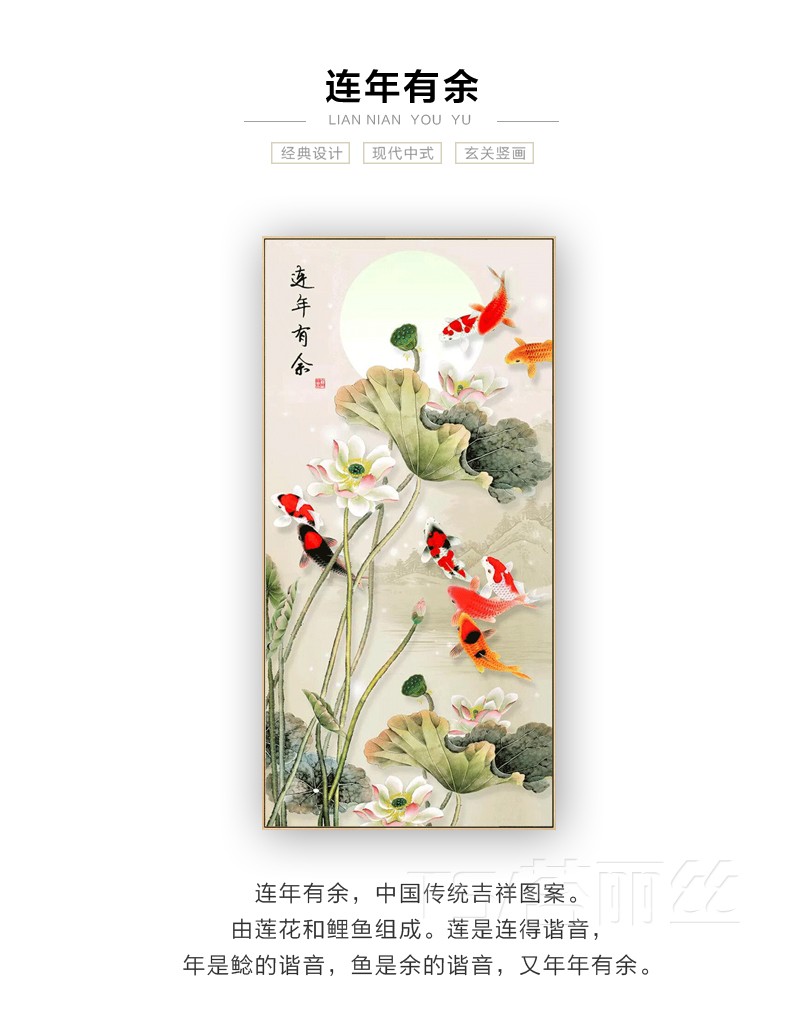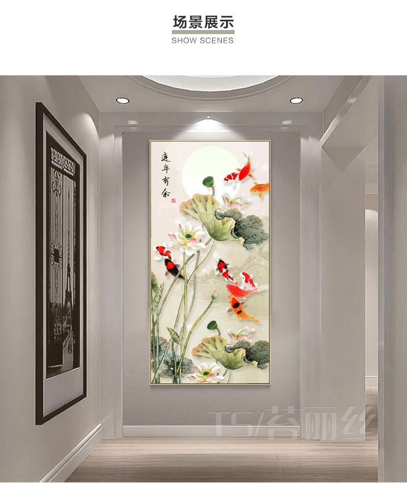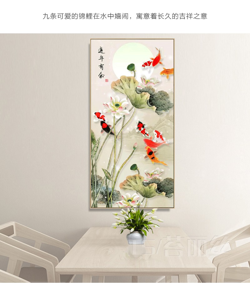 連年有余鉆石畫滿鉆玄關豎版點鉆十字繡荷花九魚圖鉆石繡貼鉆畫5d1入