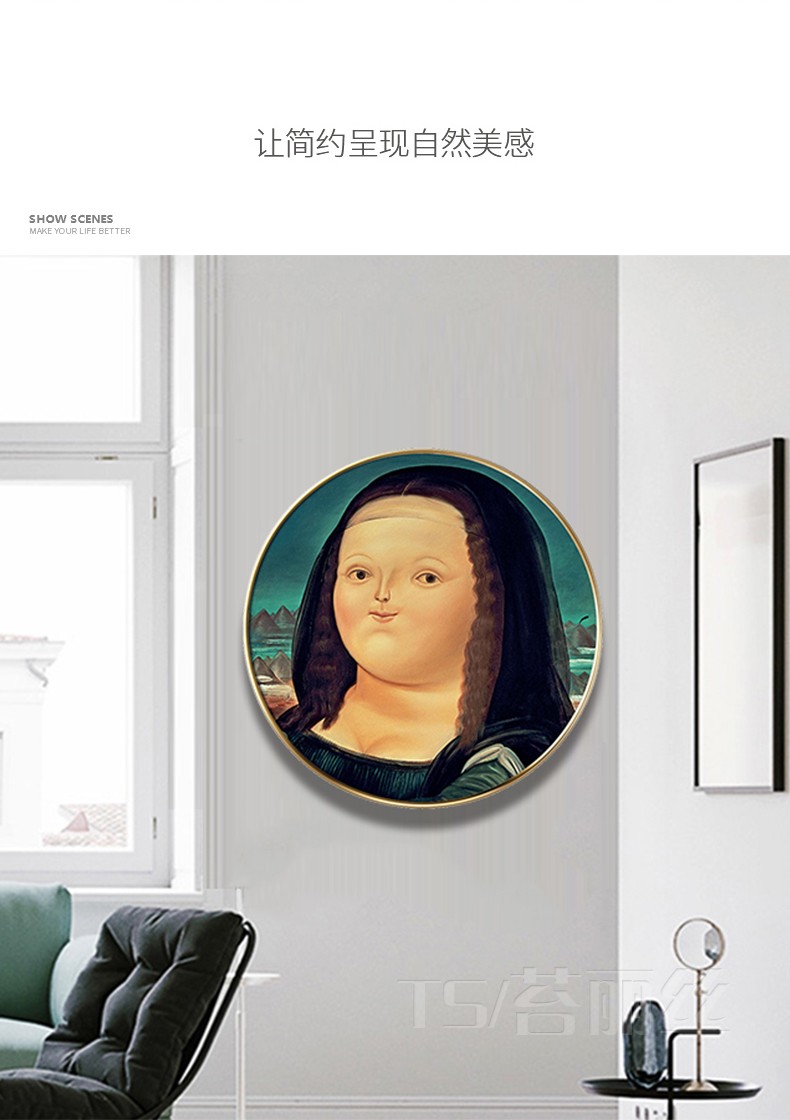 KT613320mm厚板白色框中號 直徑24CM美式客廳沙發背景墻裝飾畫歐式臥室壁畫掛畫餐廳玄關墻畫現代簡約