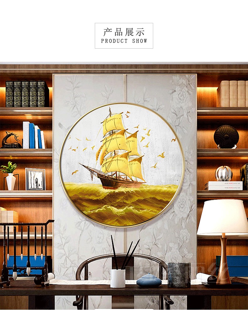 一帆風順鉆石畫滿鉆圓形十字繡現代簡約客廳辦公室鉆石繡5d貼鉆畫1入