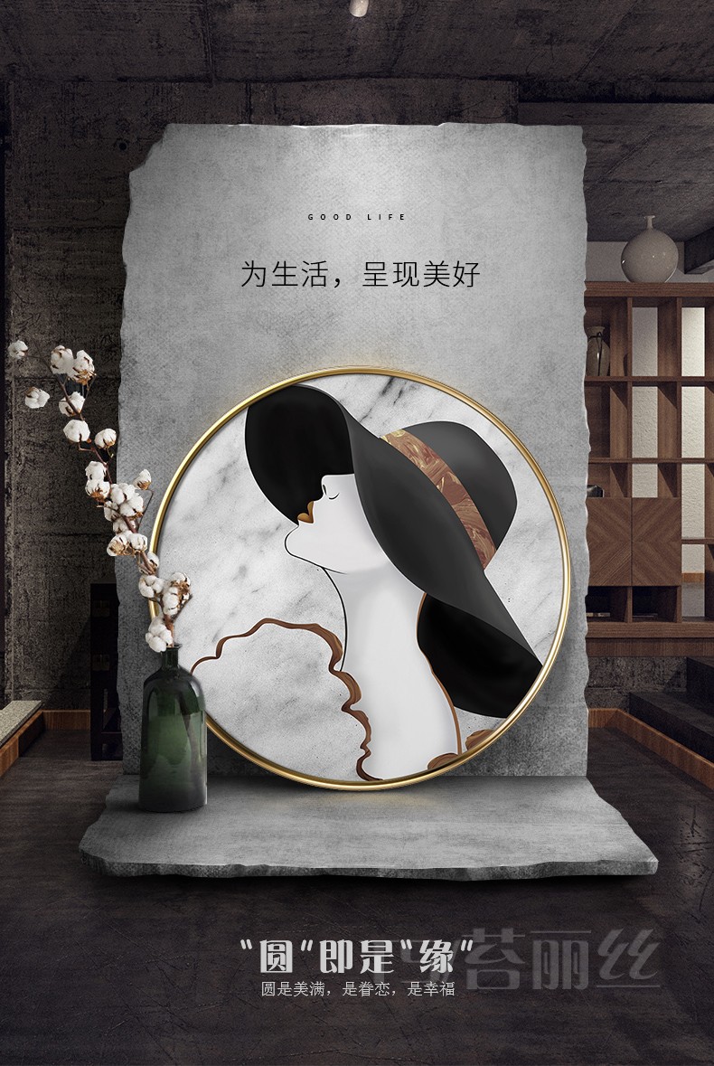 圓形客廳十字繡鉆石畫后現代輕奢人物北歐玄關掛畫簡約廚房鉆石繡1入