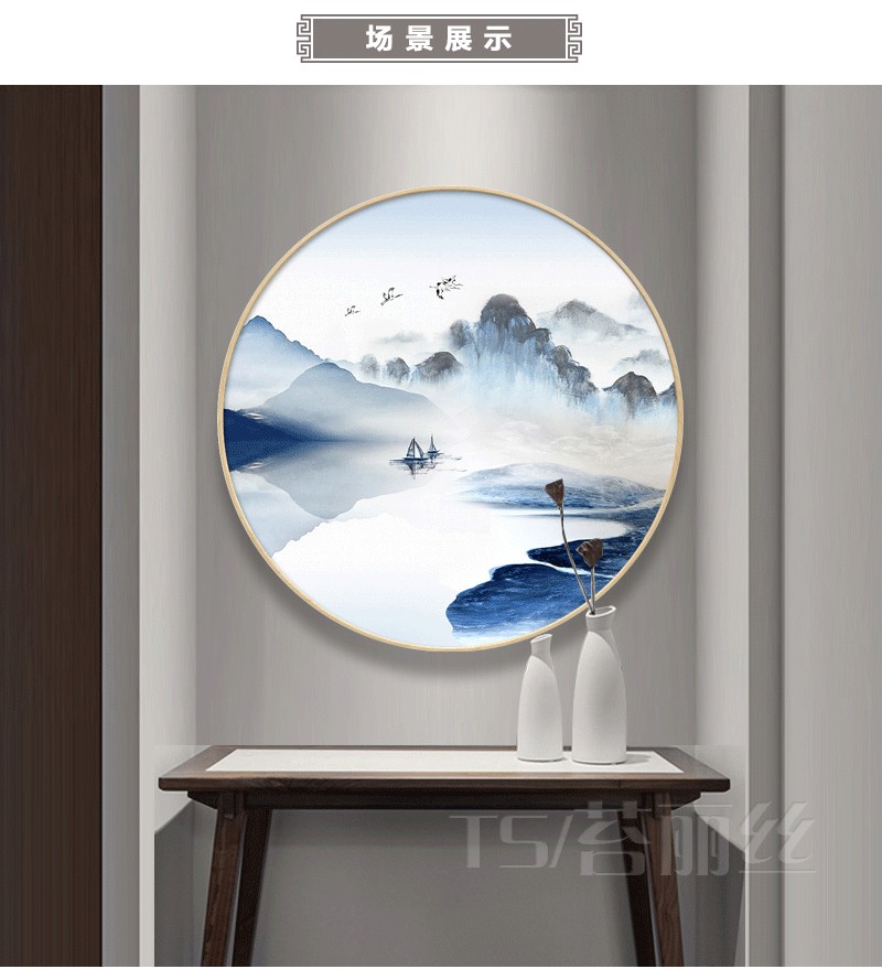 KT613320mm厚板白色框中號 直徑24CM美式客廳沙發背景墻裝飾畫歐式臥室壁畫掛畫餐廳玄關墻畫現代簡約