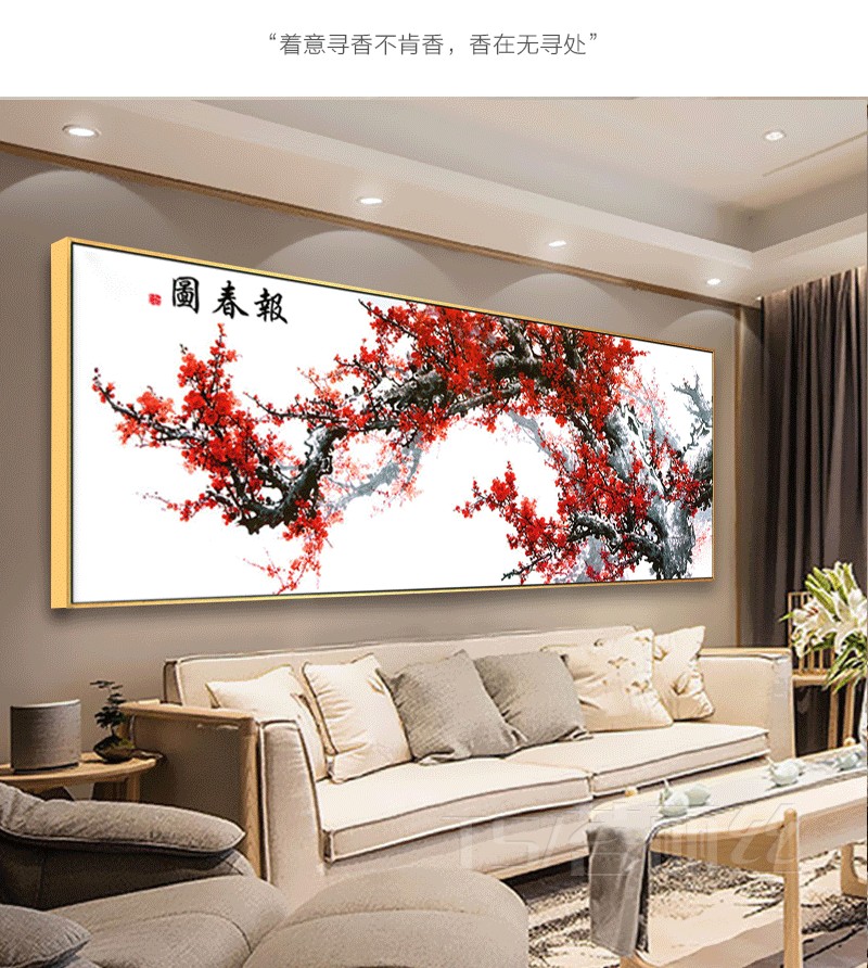 十字繡紅梅報春圖鉆石畫滿鉆新款2019客廳家用鉆石繡5d鑲鉆點鉆畫1入