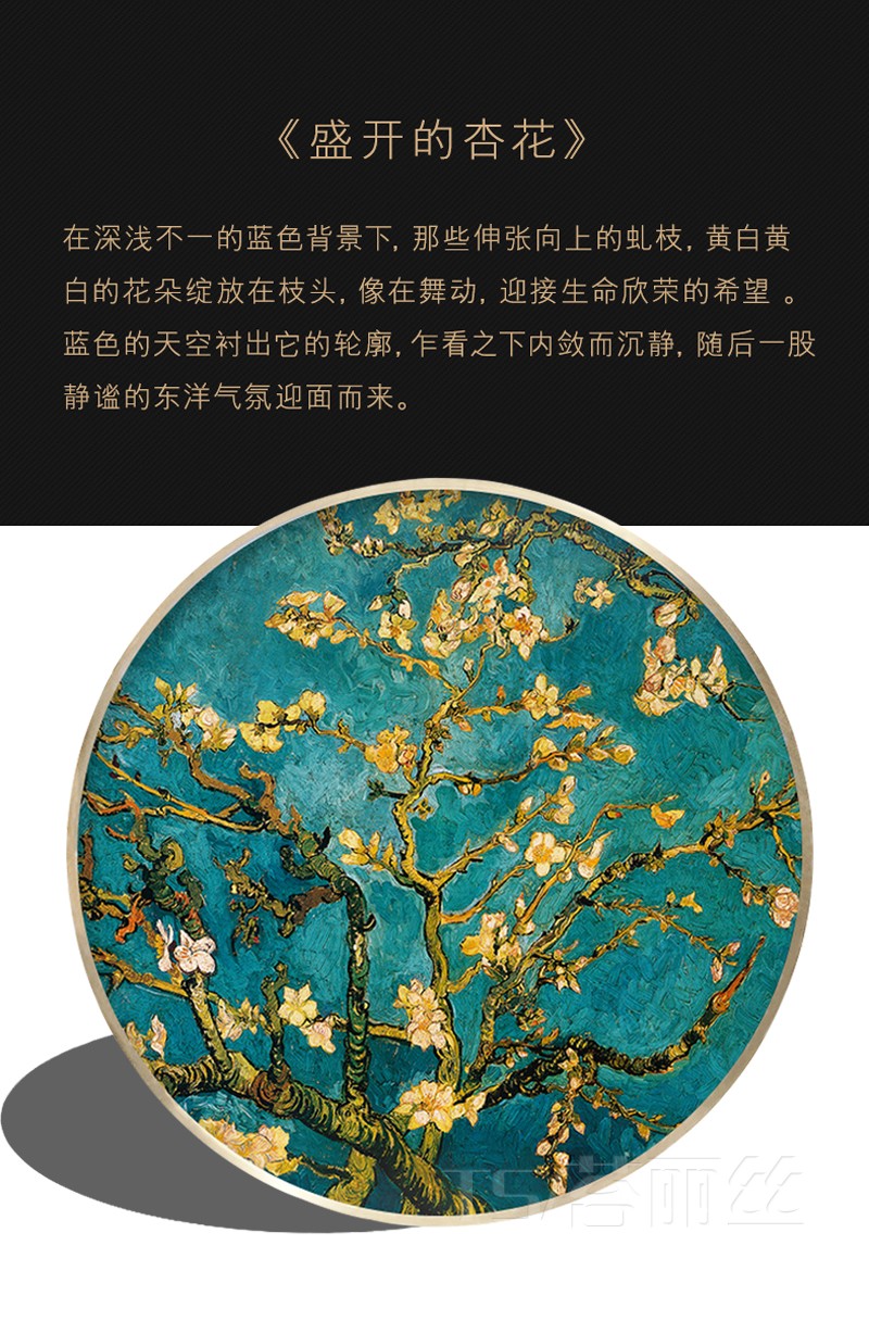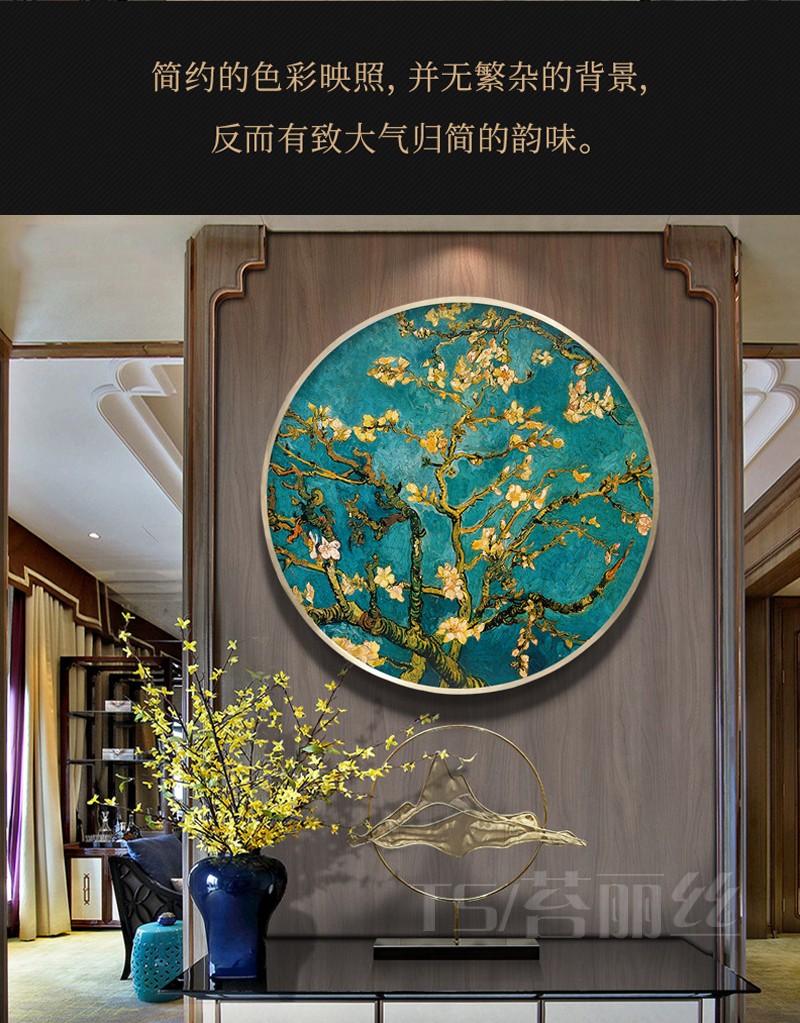 梵高杏花圓形十字繡鉆石畫貼鉆繡小幅簡單點鉆DIY藝術鉆石繡臥室1入