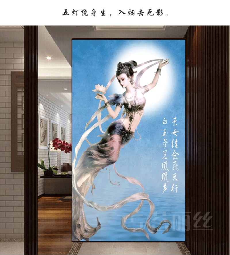 敦煌飛天仙女圖鉆石畫滿鉆十字繡客廳玄關豎版仙女散花鉆石繡人物1入