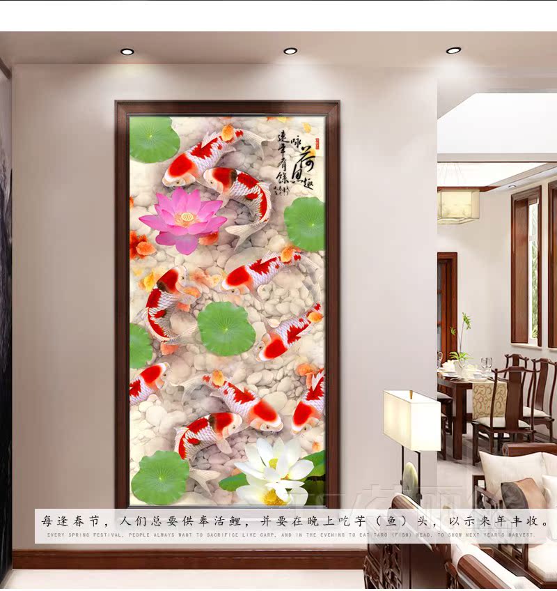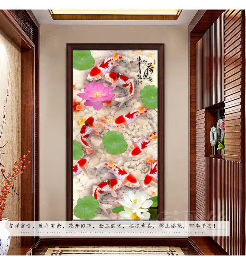 年年有余鉆石畫豎版十字繡點鉆畫玄關過道走廊鉆石繡簡約現代客廳1入