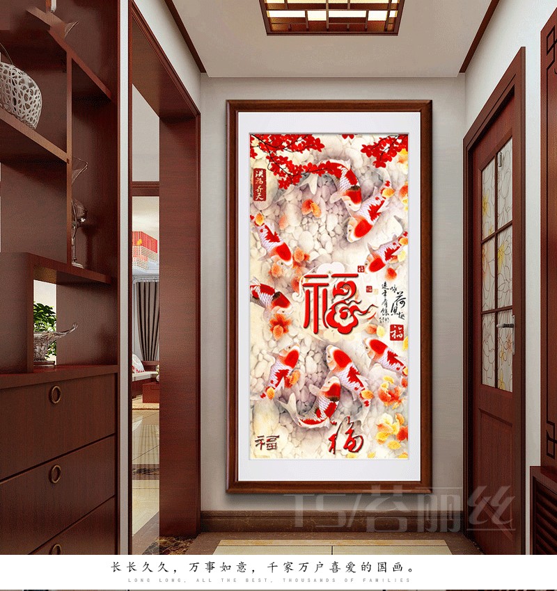 九魚圖十字繡貼鉆2018新款客廳福字玄關豎版魚福圖梅花鉆石繡滿鉆1入