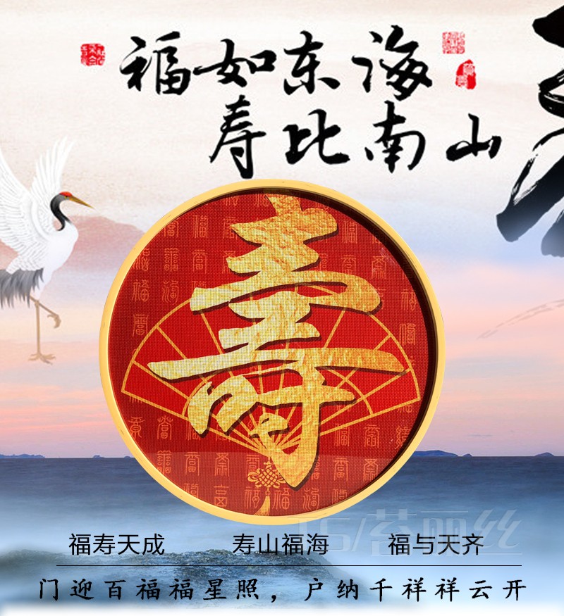 十字繡2018新款帶框出售賀壽百壽圖3d精準印花圓形玄關客廳配框畫1入