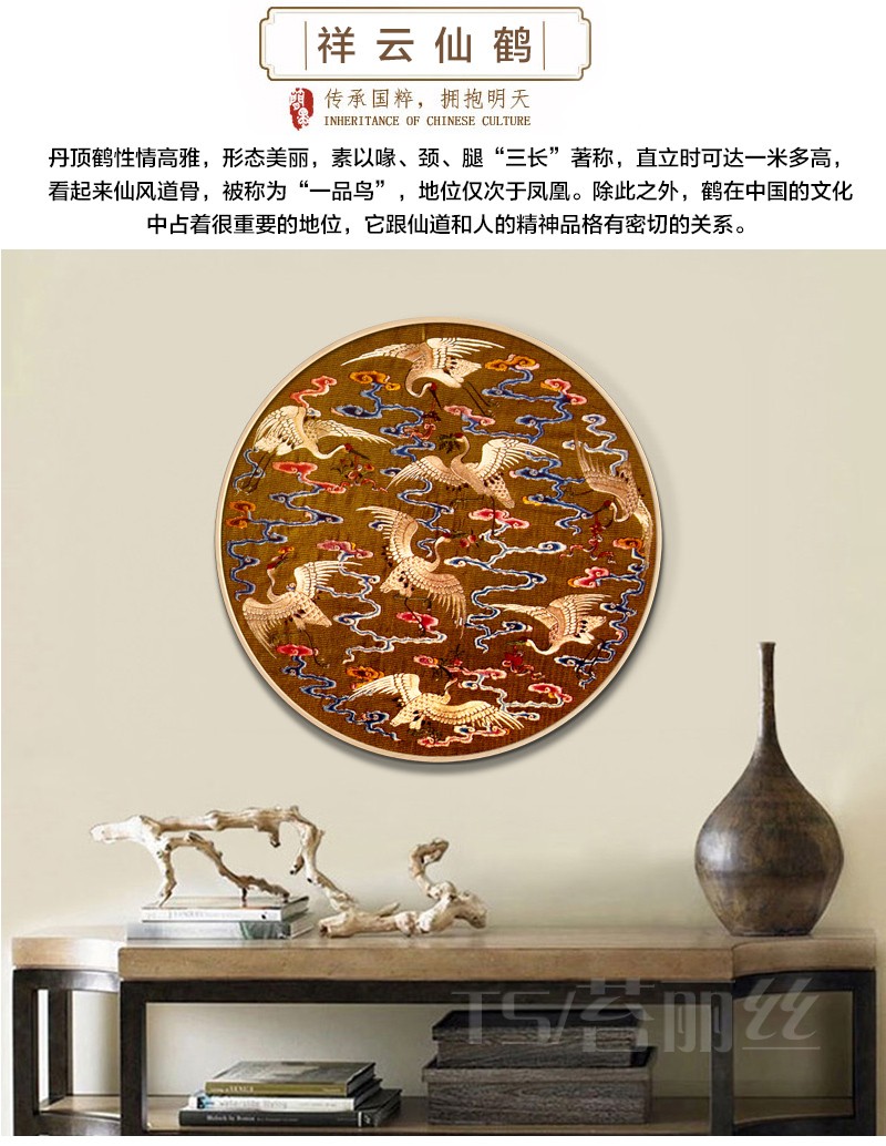 仙鶴祥云鉆石畫十字繡5d新款客廳中國風古典吉祥圖案圓形點鉆繡畫1入