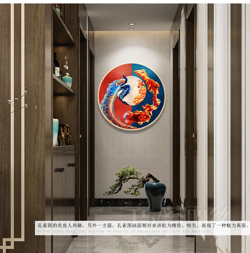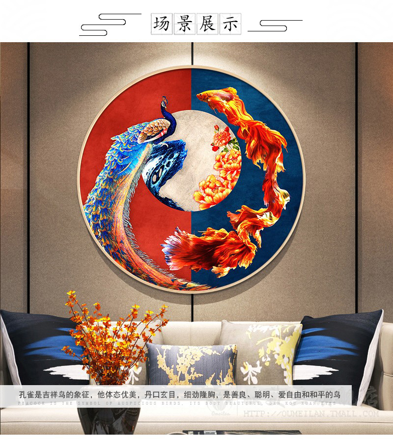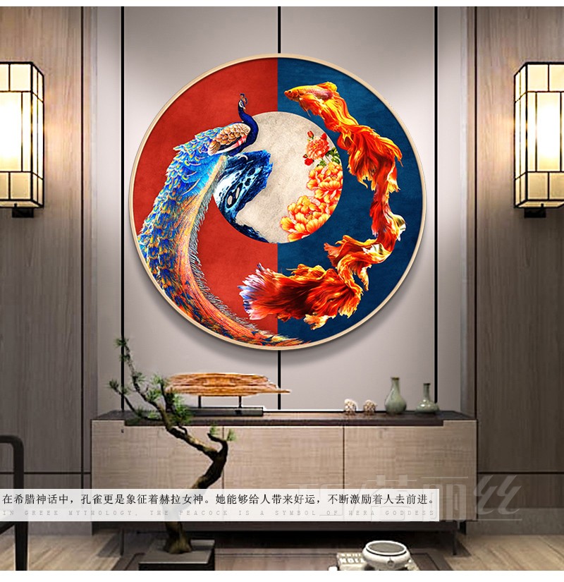 富貴孔雀魚圖鉆石畫臥室現代中式古典客廳貼鉆十字繡小幅圓形鉆繡1入