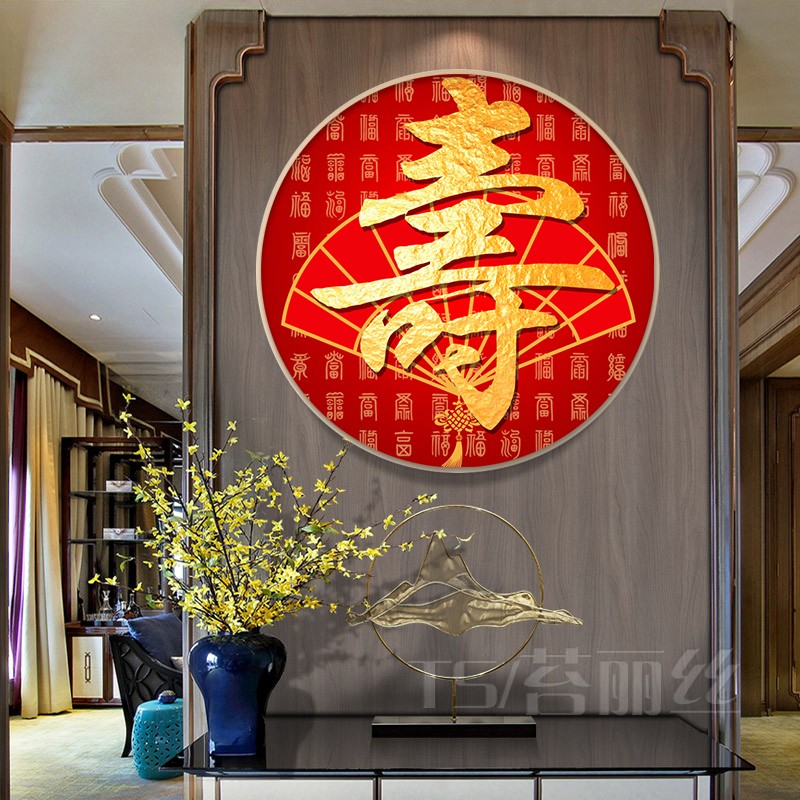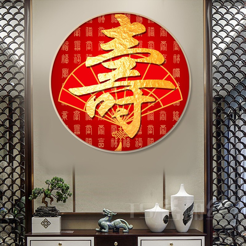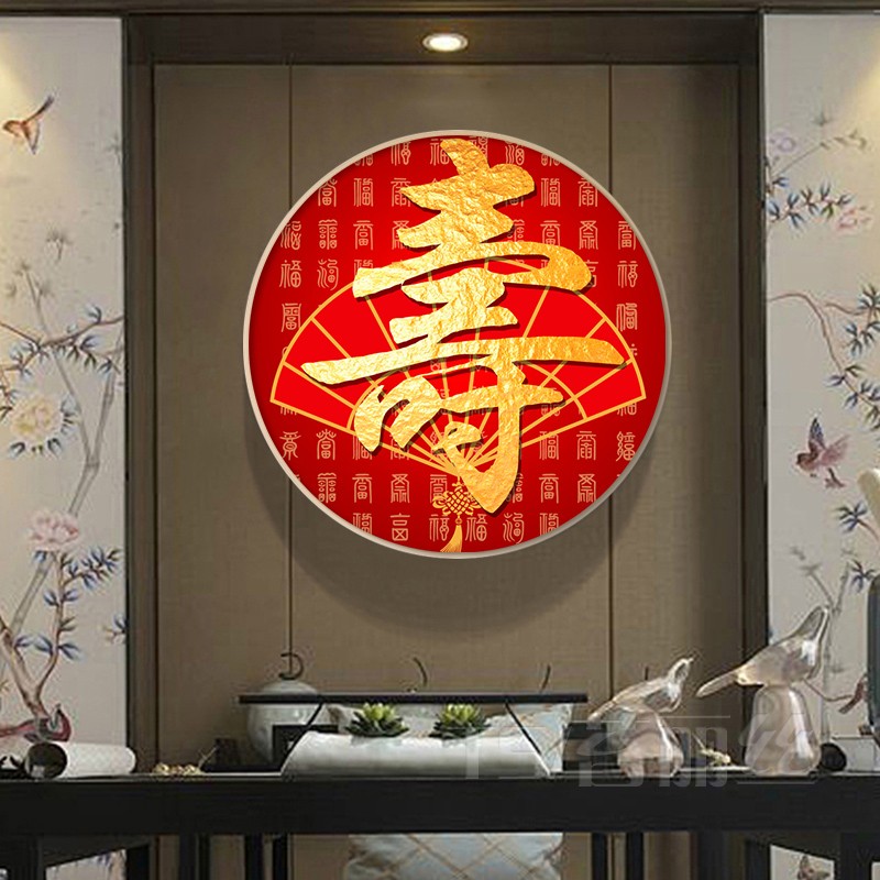壽十字繡賀壽新款百壽圖線繡滿繡圓形畫客廳全繡棉線中國風送禮畫1入