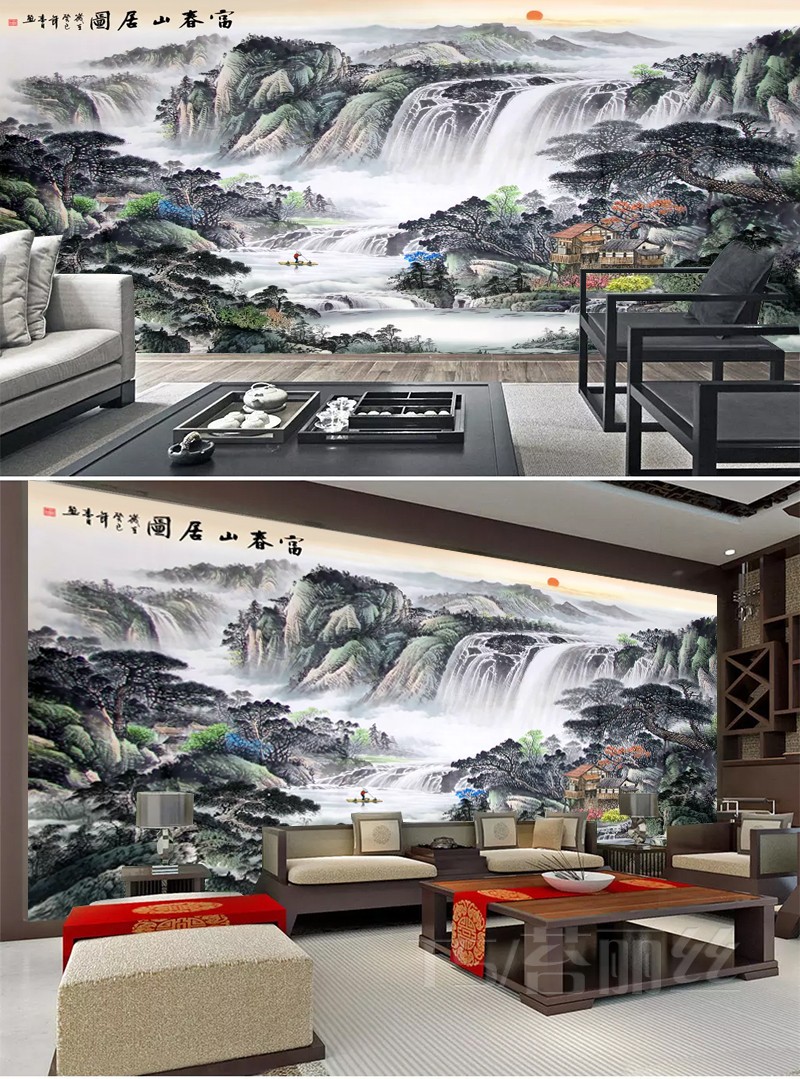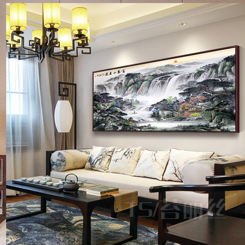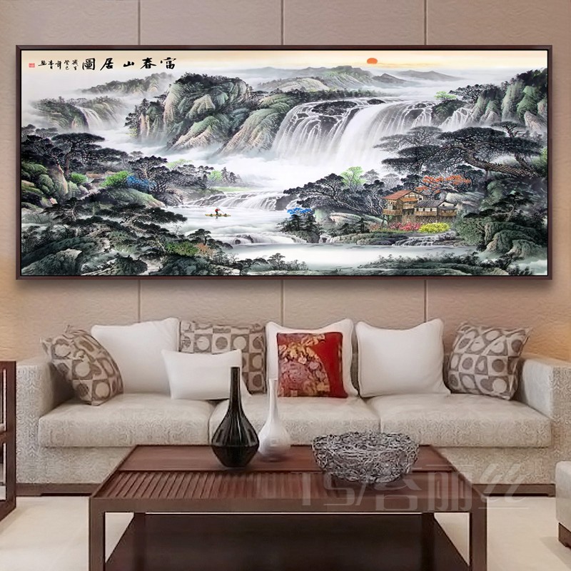 富春山居圖十字繡線繡新款2019滿繡客廳山水風景大幅3米印花全繡1入