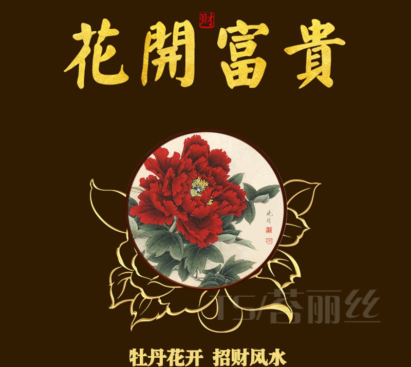 新款圓形十字繡國色牡丹滿繡線繡客廳小幅初學者簡單繡全繡棉線繡1入