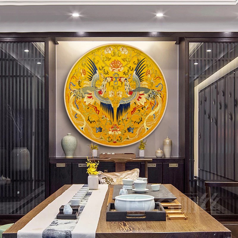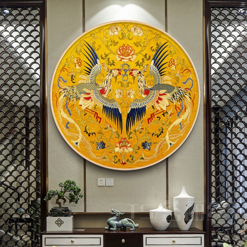 圓形十字繡線繡2018新款玄關孔雀鳳求凰客廳滿繡小幅新手簡單刺繡1入