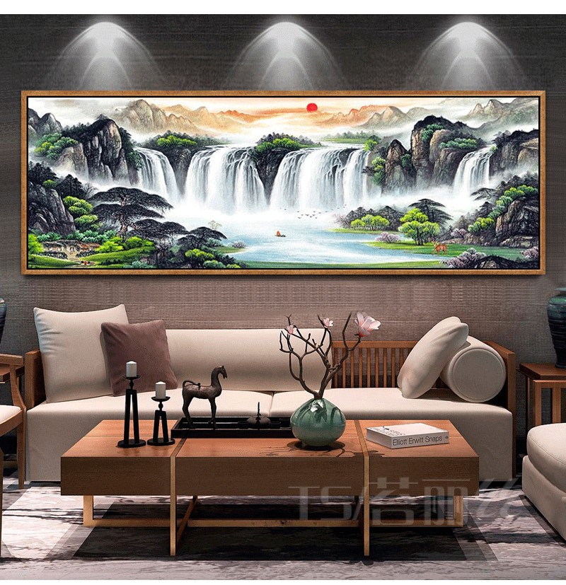 旭日東升十字繡2019新款客廳滿繡流水生財山水風景畫2米全繡棉線1入